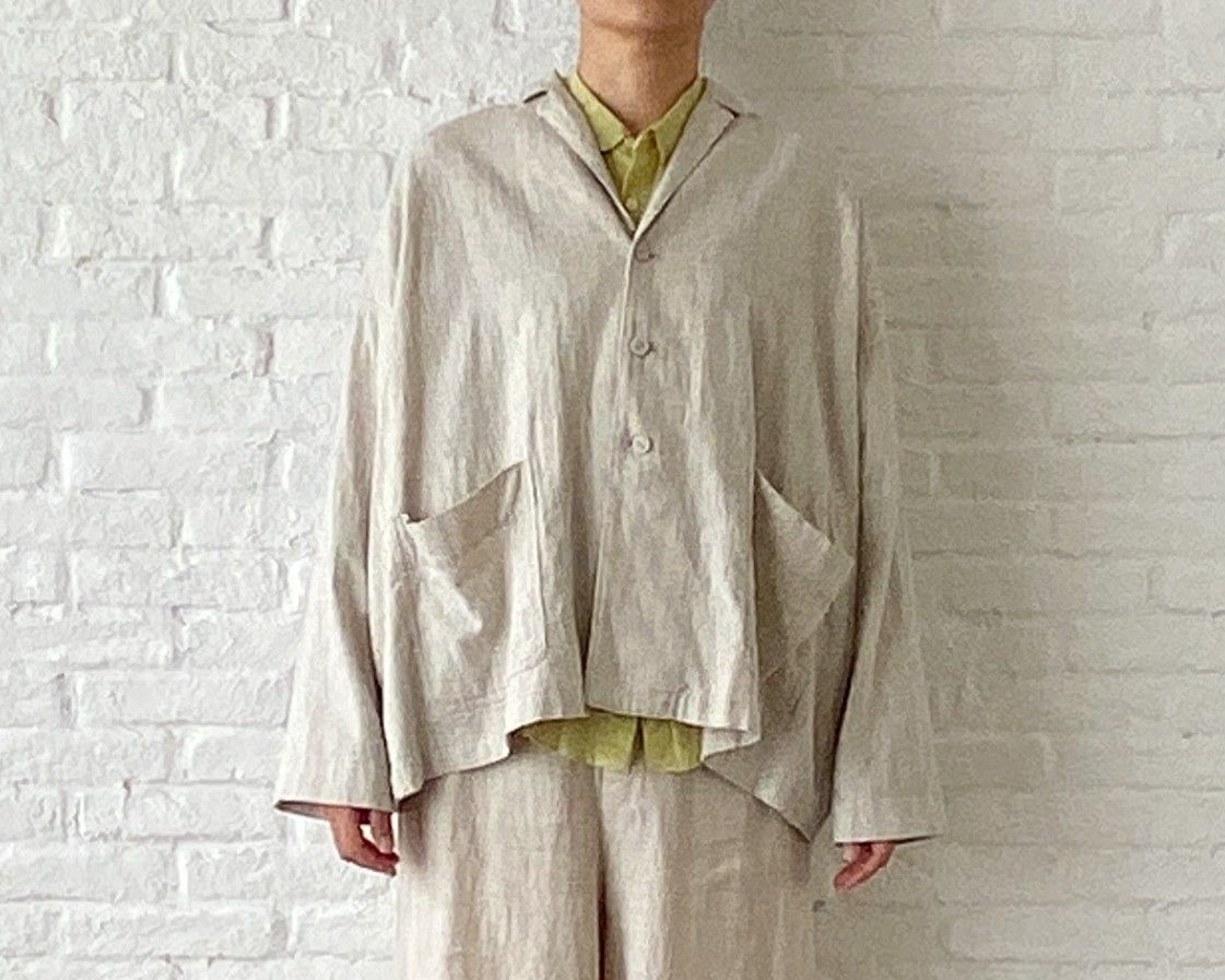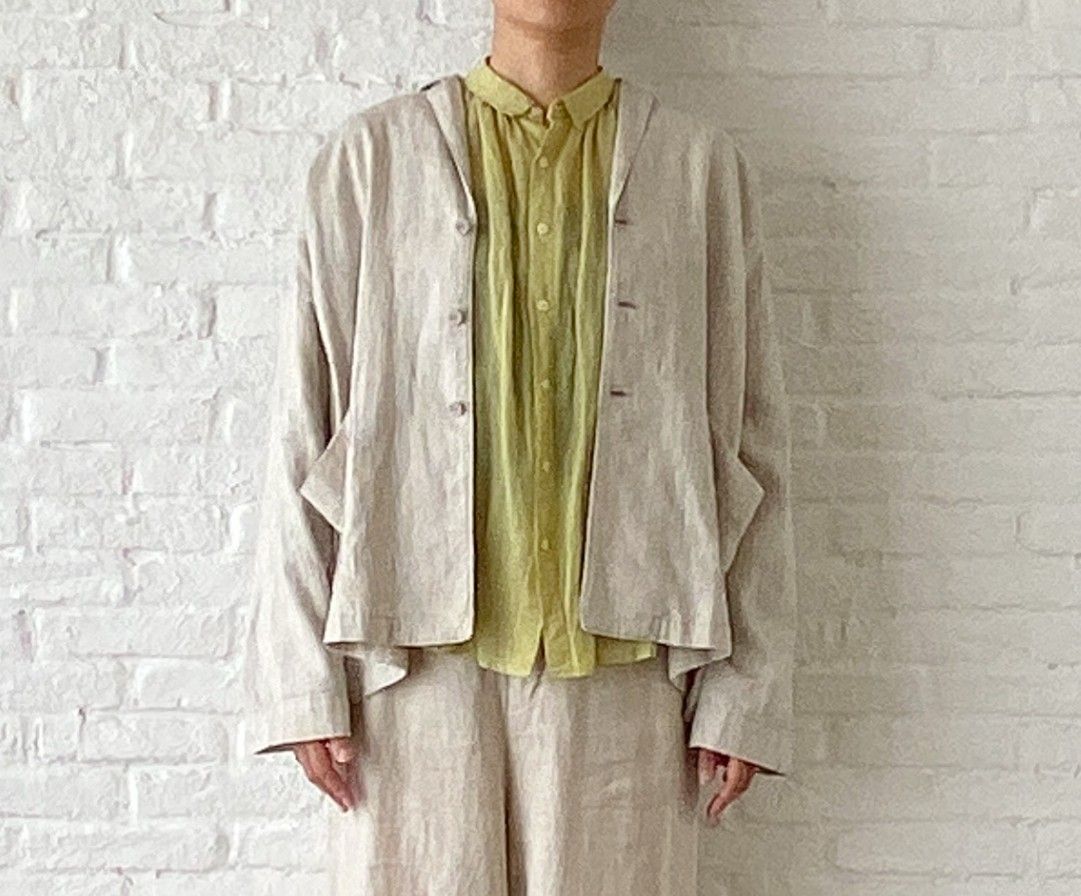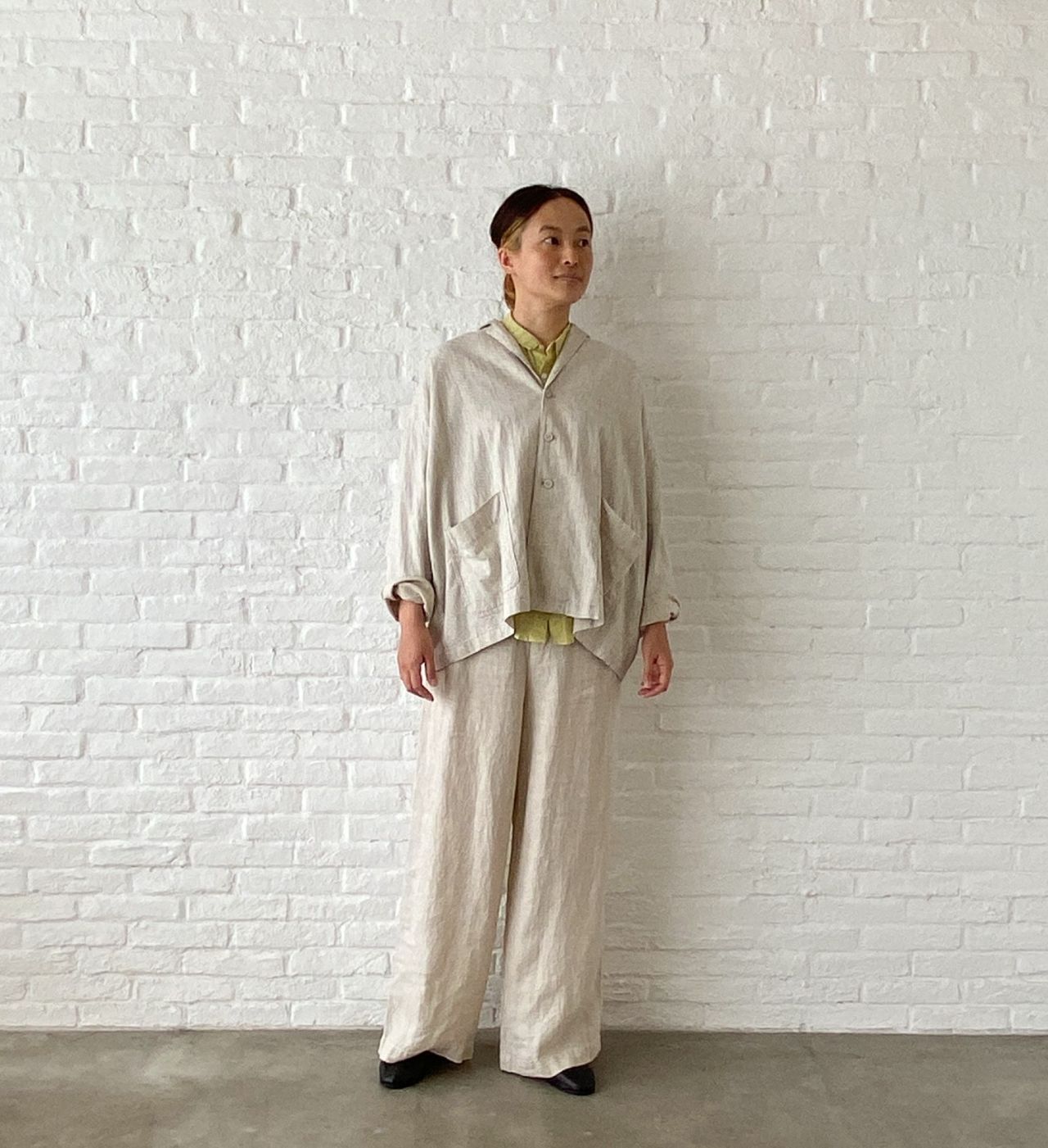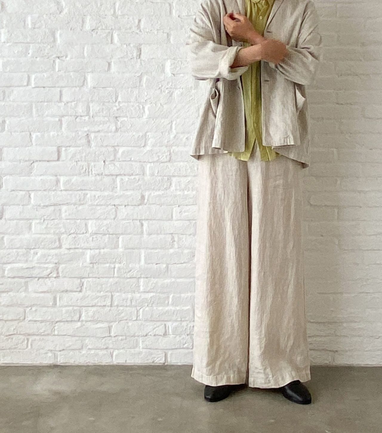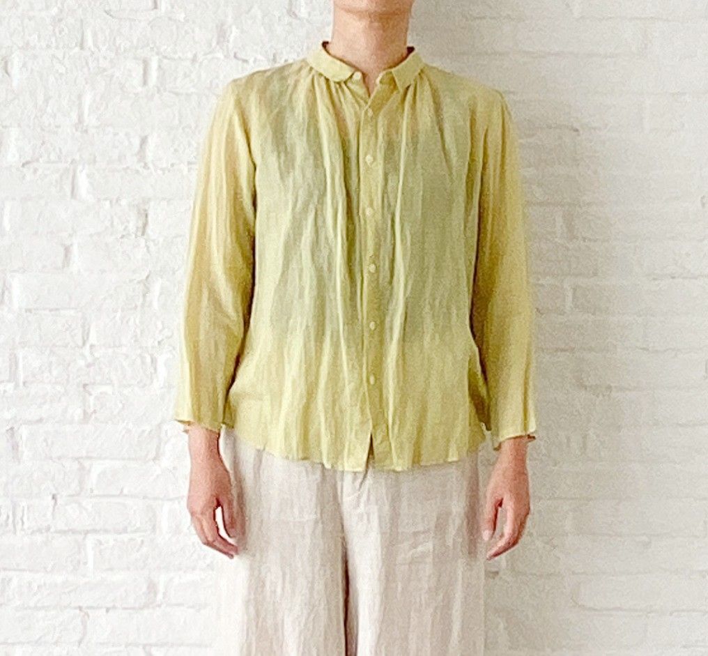 薄手の柔らかな素材感と、イエローの色味が春夏らしい印象に。