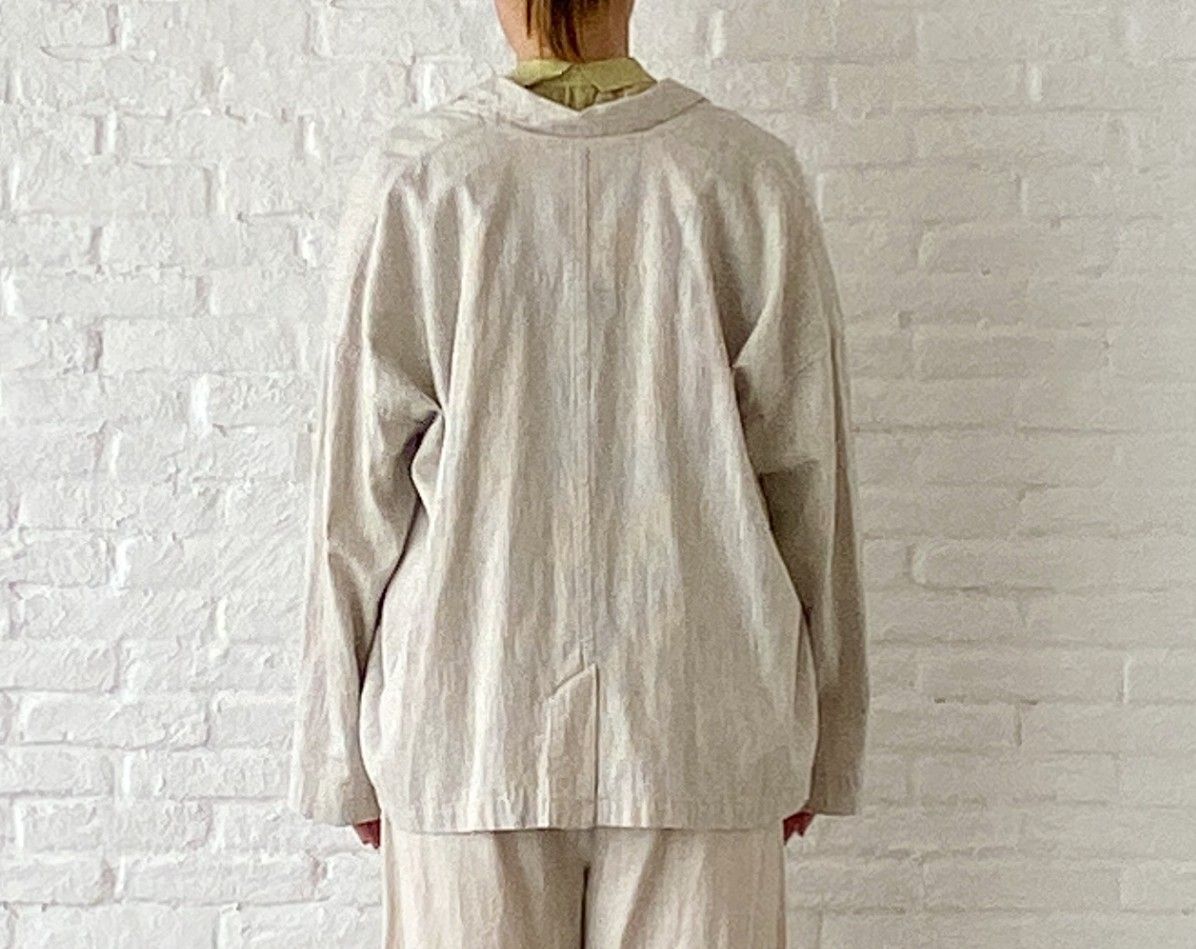 細いストライプ柄が入って、少し起毛した綿麻素材です。