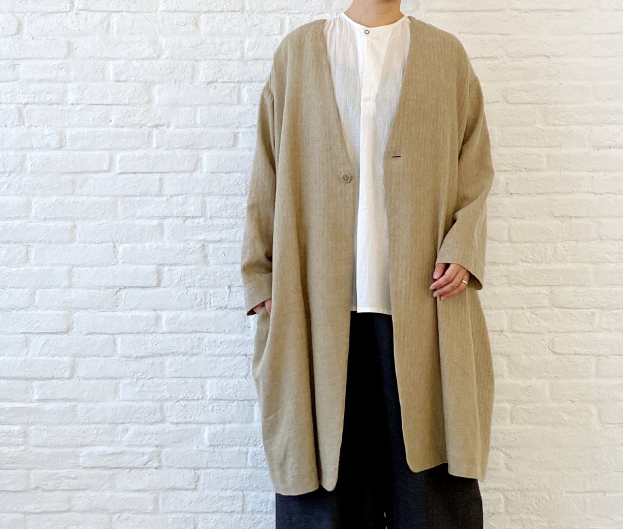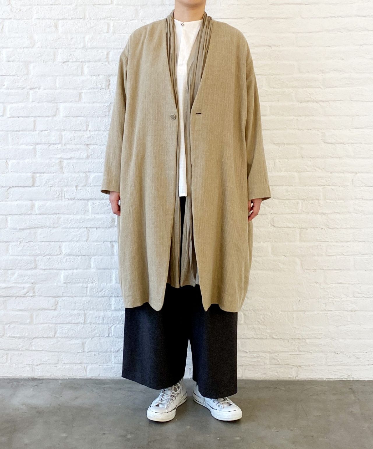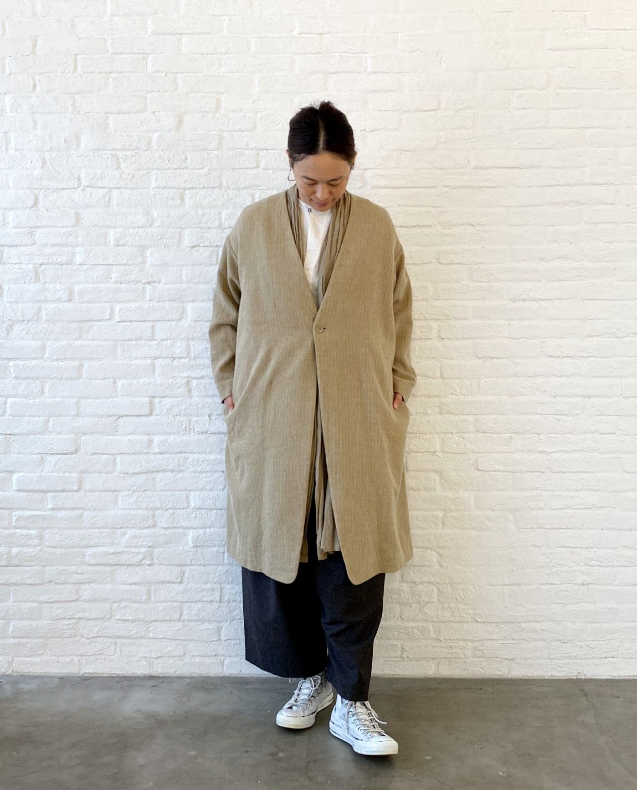 中のライナーはアウターと同じ位の長さ。襟ぐりや裾からチラッと見えた重ね着感が素敵です。