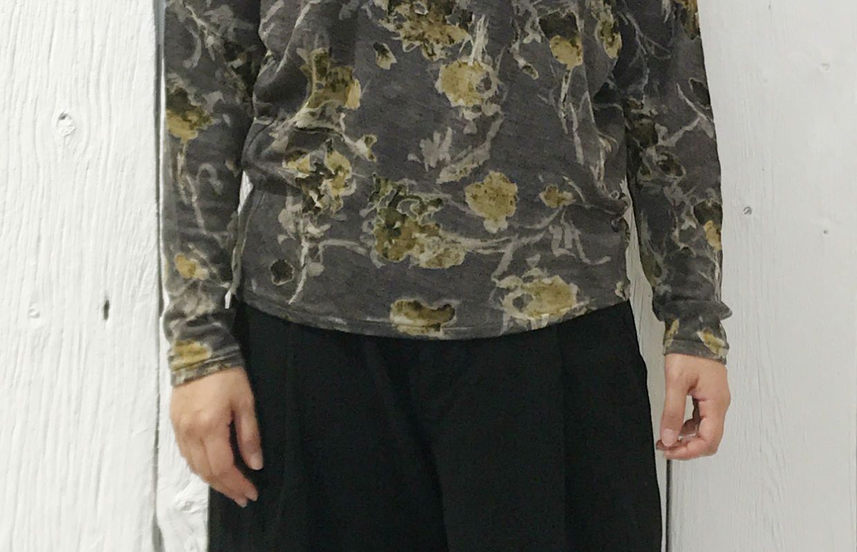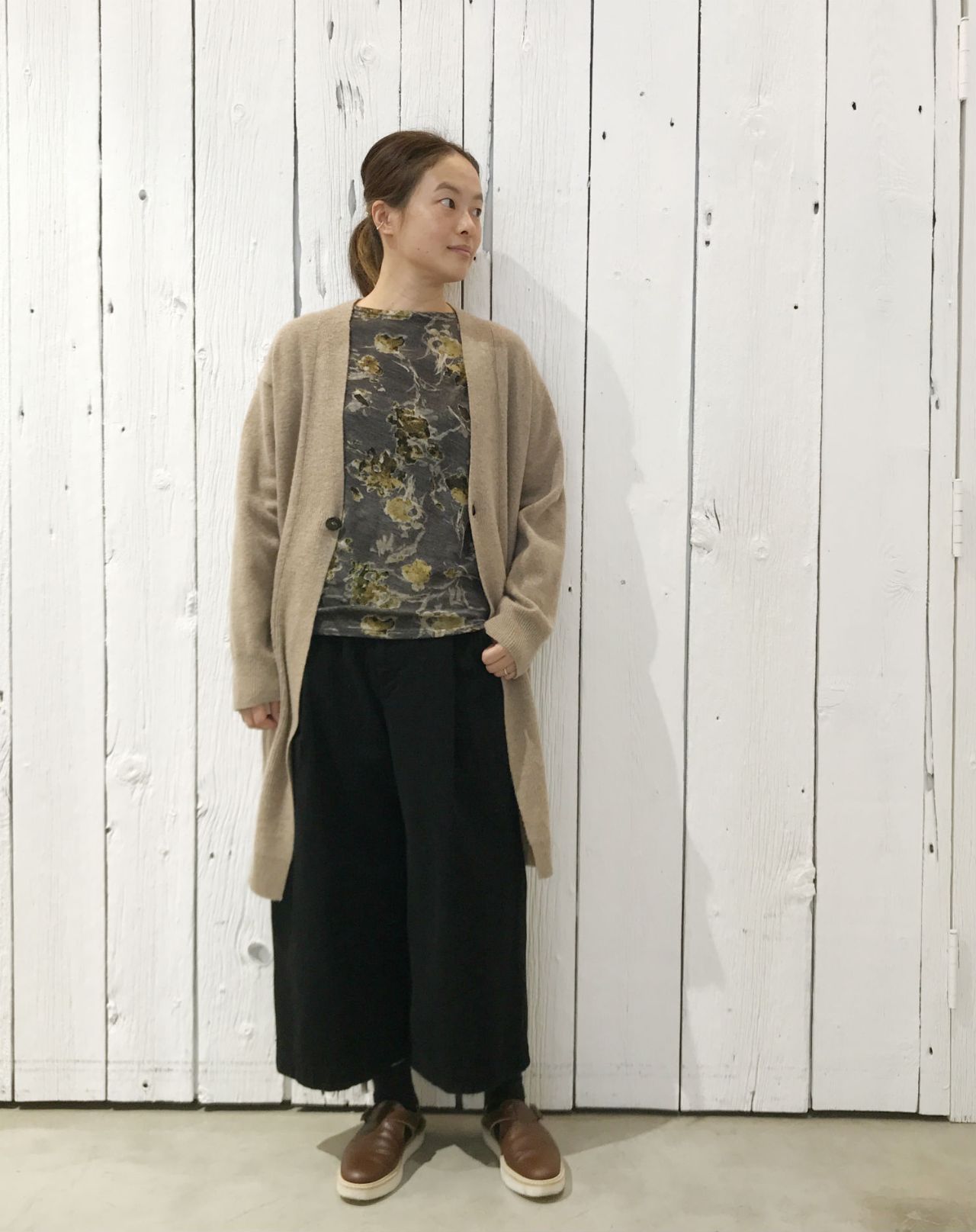 今季は薄手ウールの柄カットソーが多いですが、その中でも落ち着いたカラーなので着回しのしやすさも。