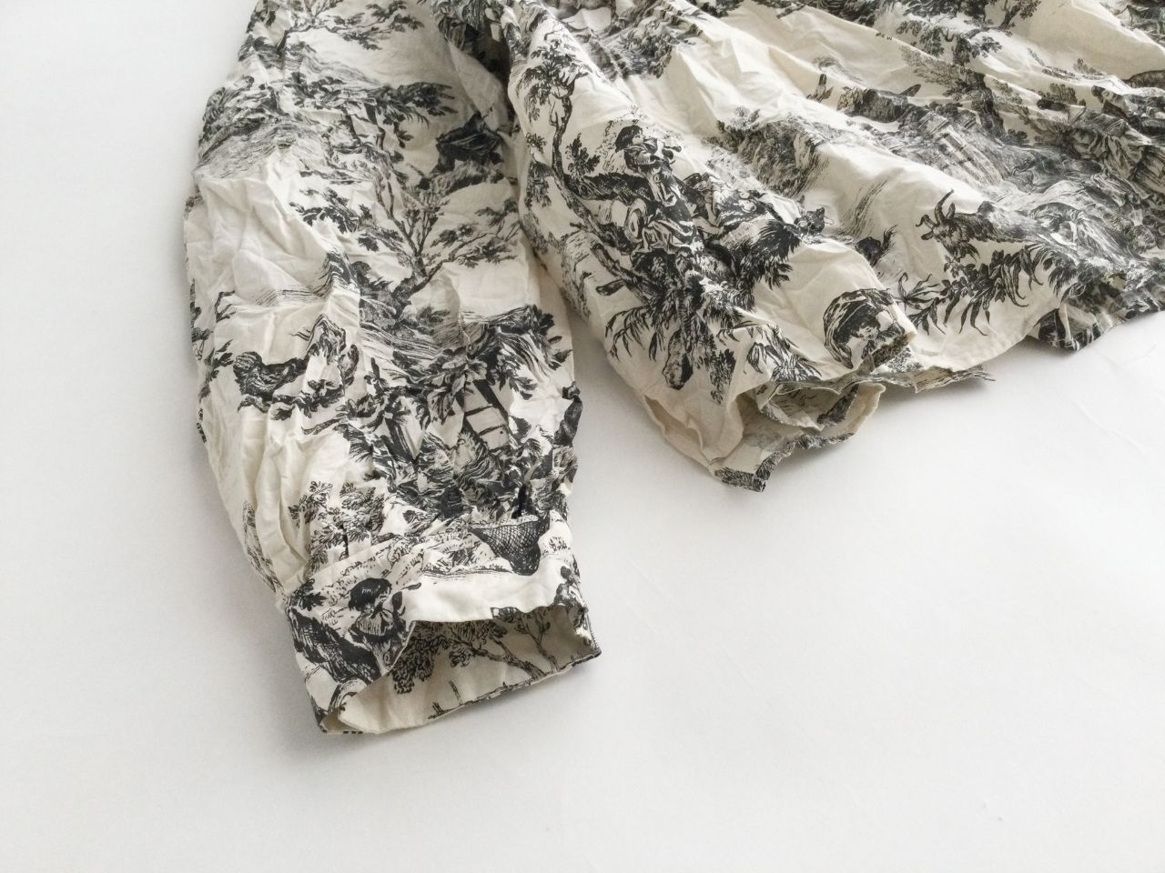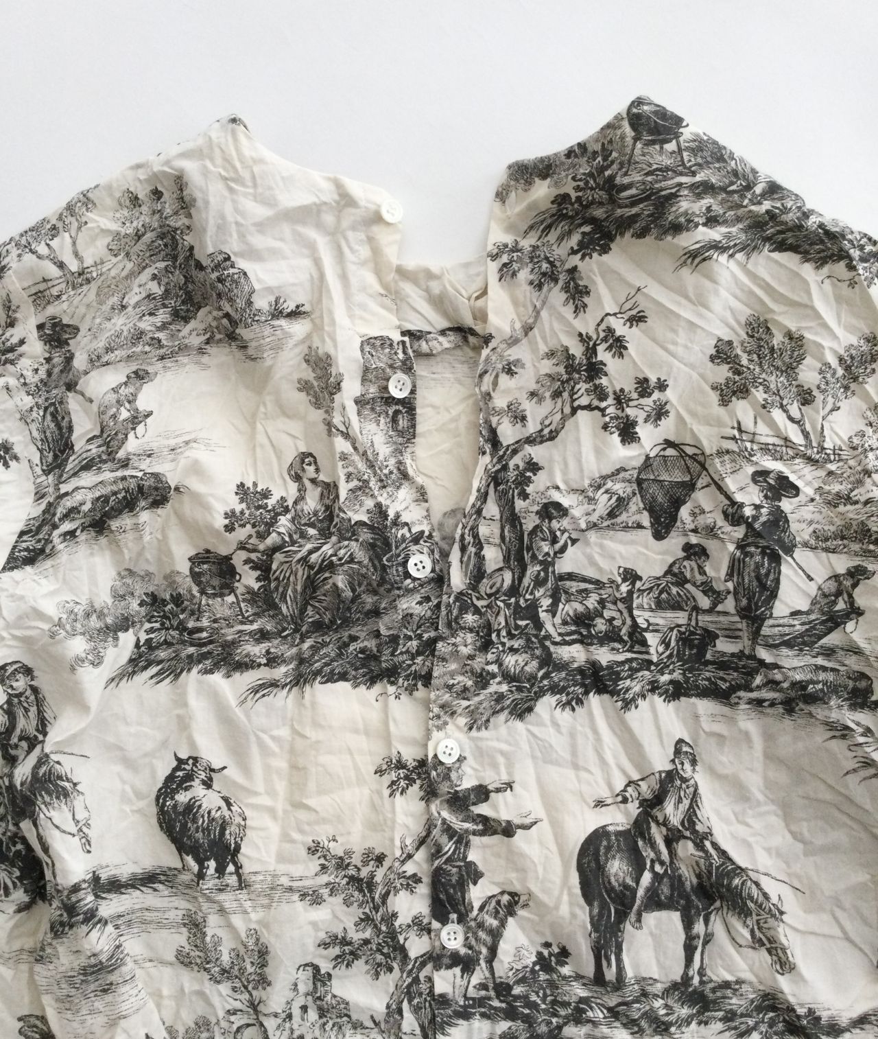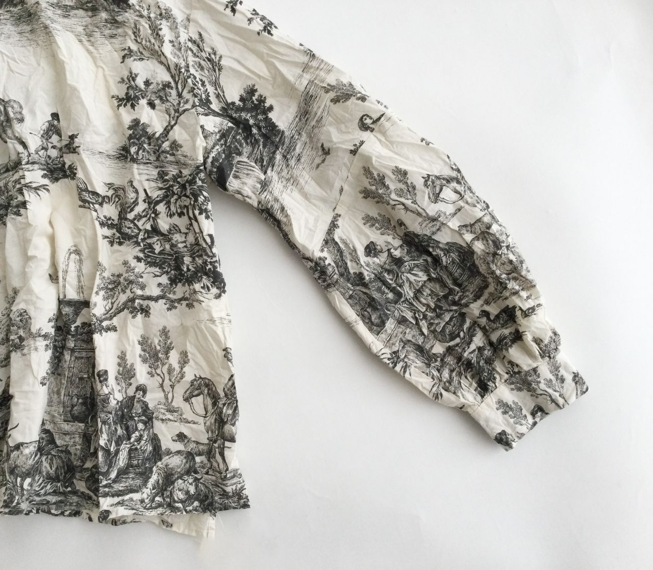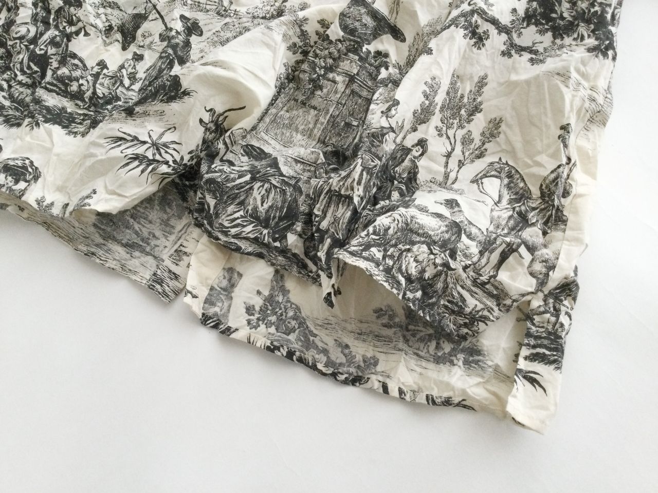 トワルドジュイ(toil de jouy)という、18世紀頃のデザインで人物・風景・花・植物をモチーフとしたフランス伝統的な柄。