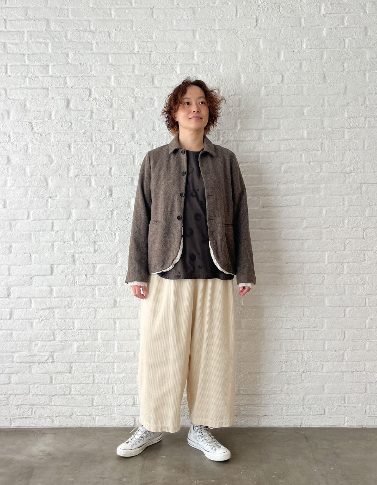昨日のブログでご紹介したコーデュロイパンツと同シリーズの、ワイドパンツを絡めた新作のご紹介です。