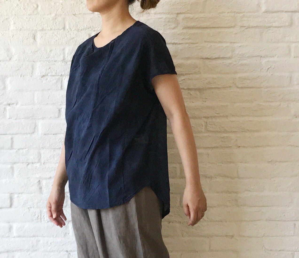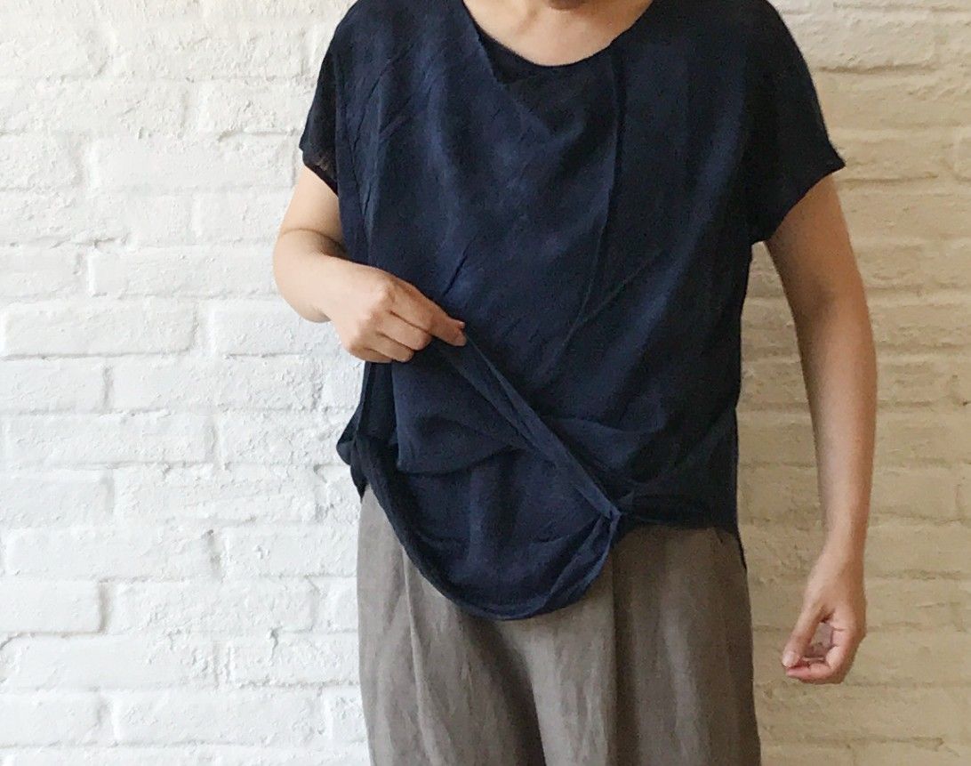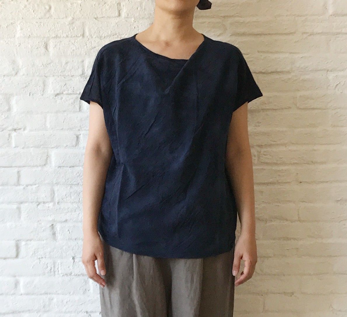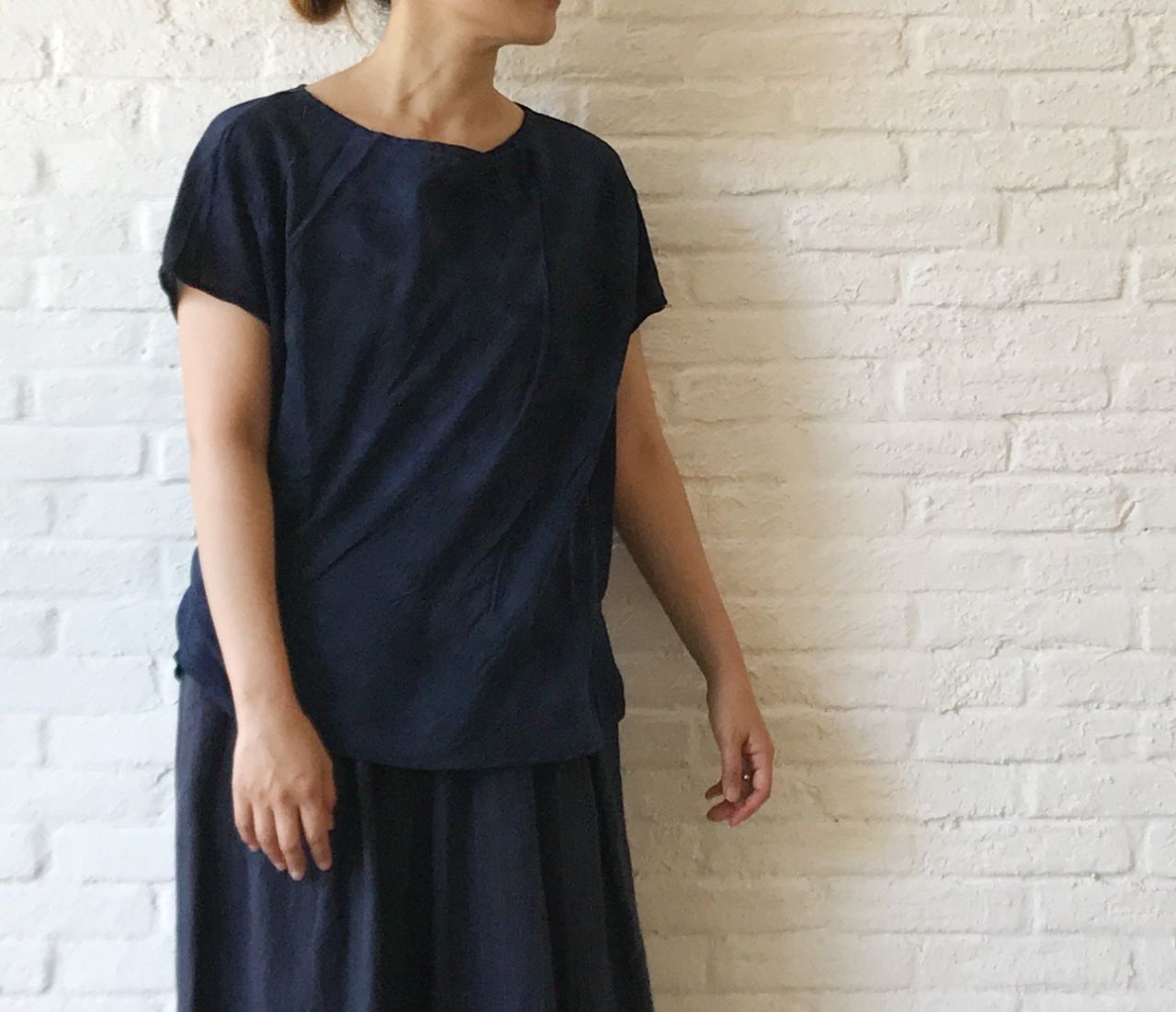 前中心だけ、カットソー素材の上にドレープを持たせた布帛をのせて二重にしました。