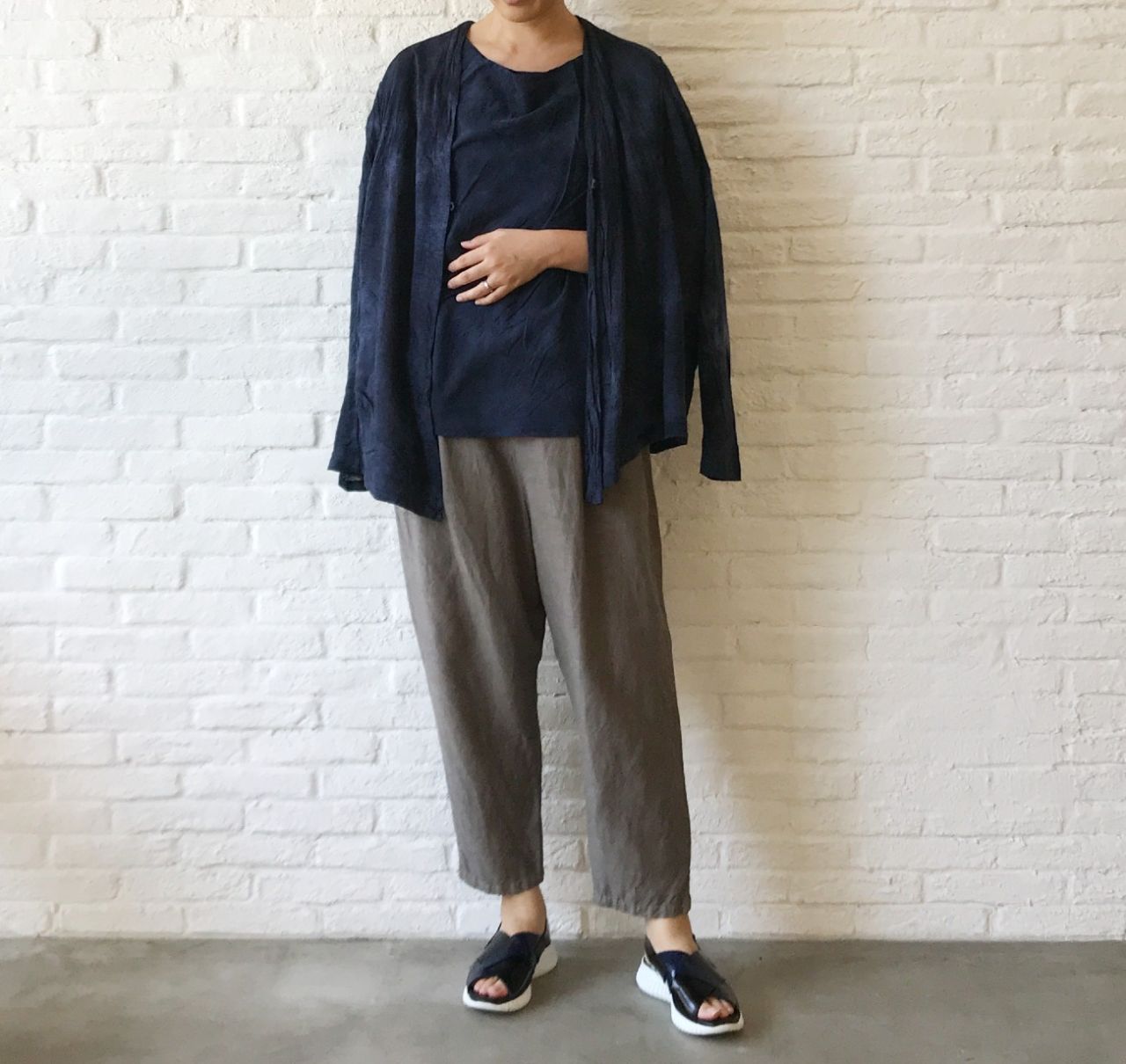 アンサンブルで着ていただくと、落ち着きある深みが出たスタイリングに。
