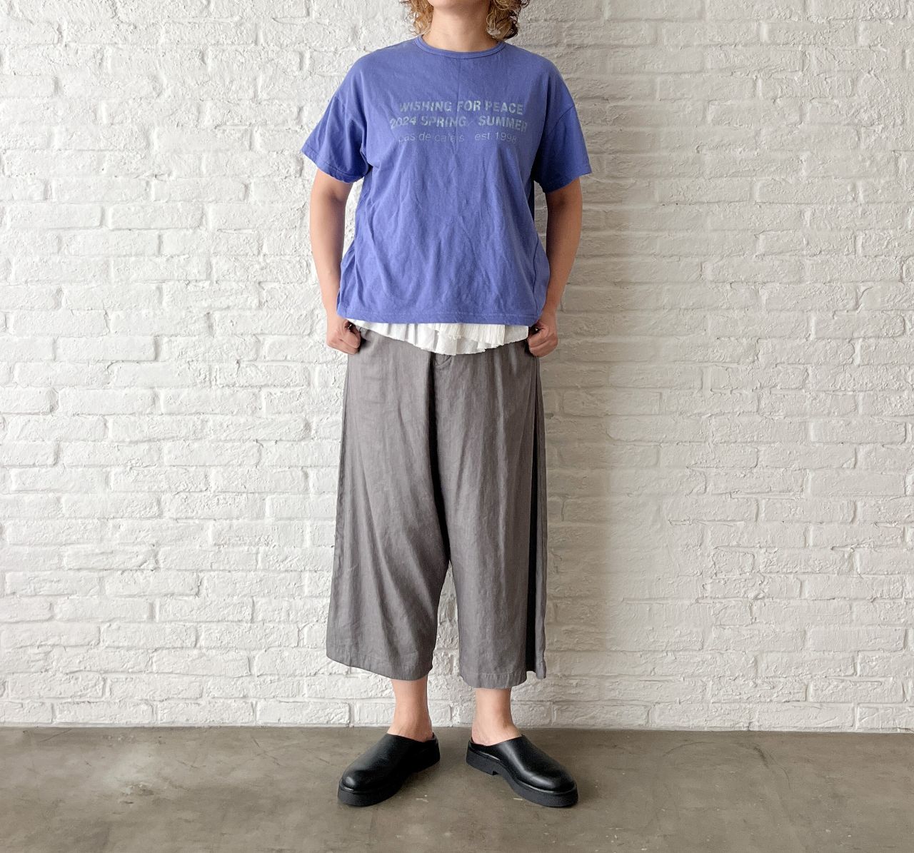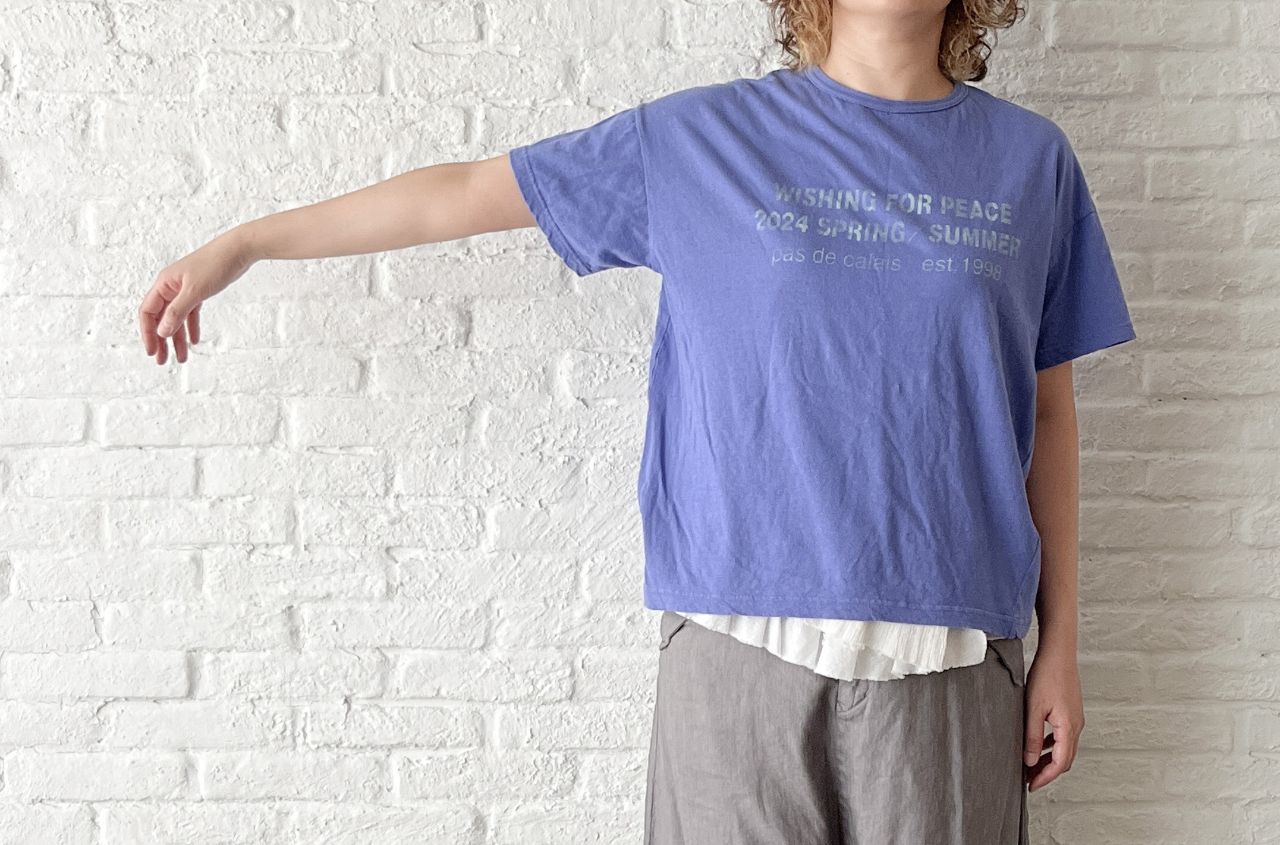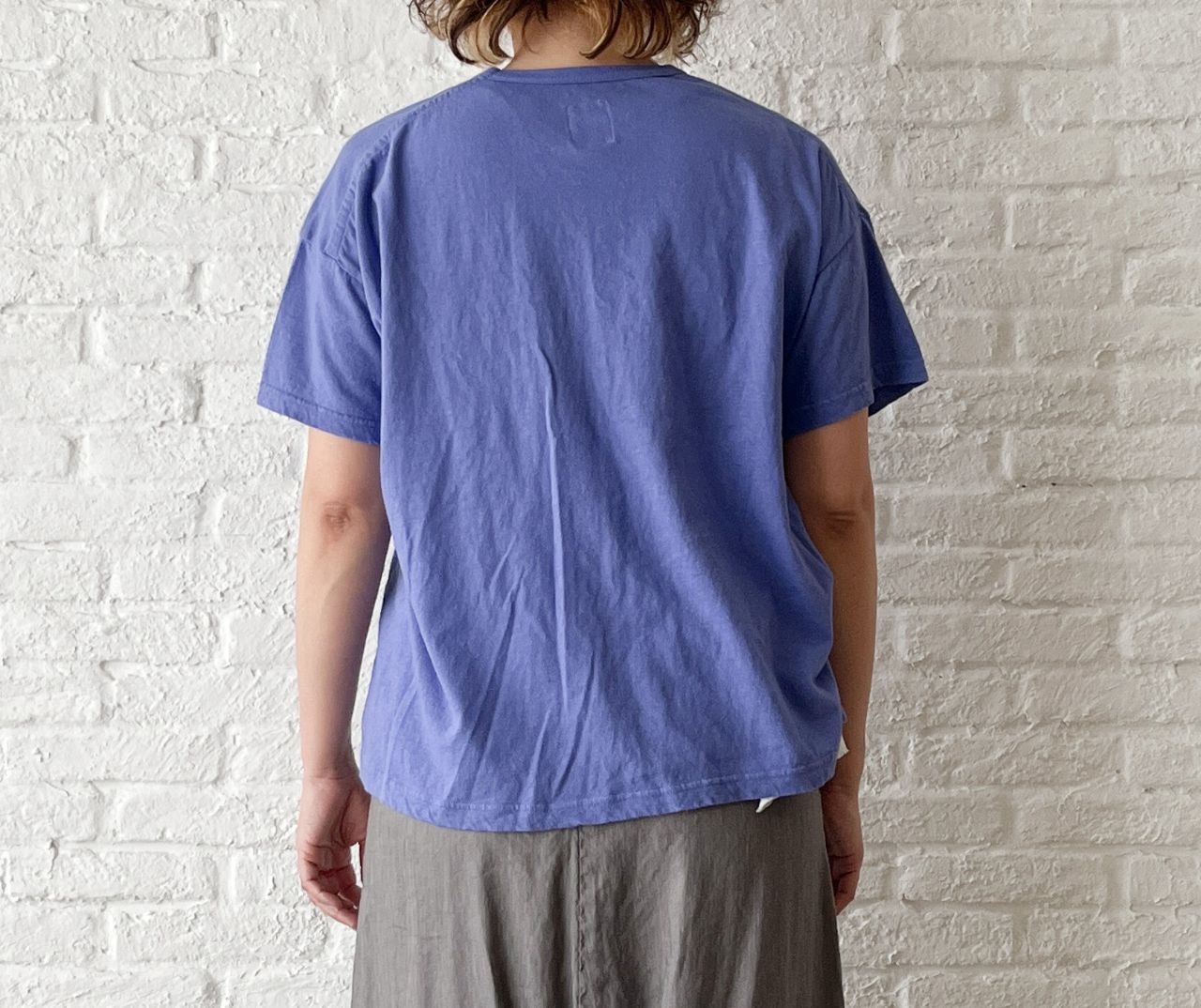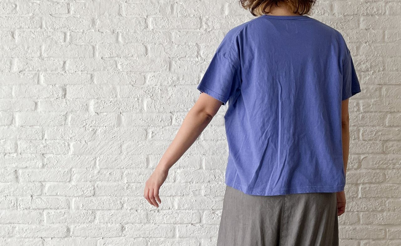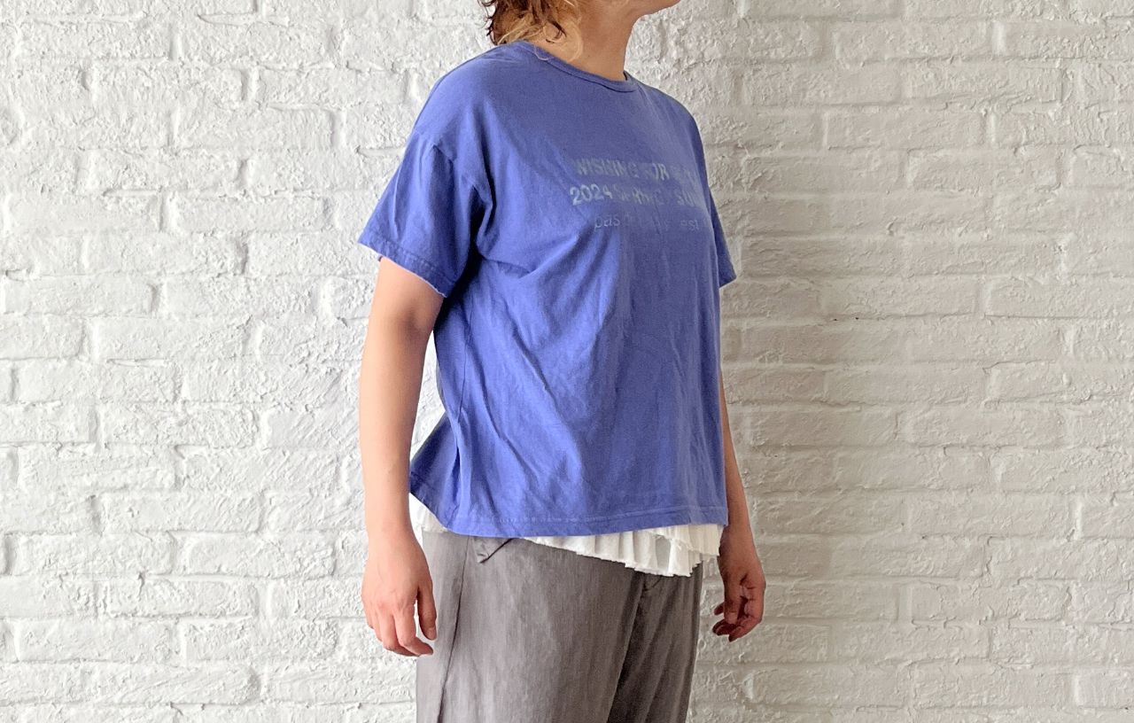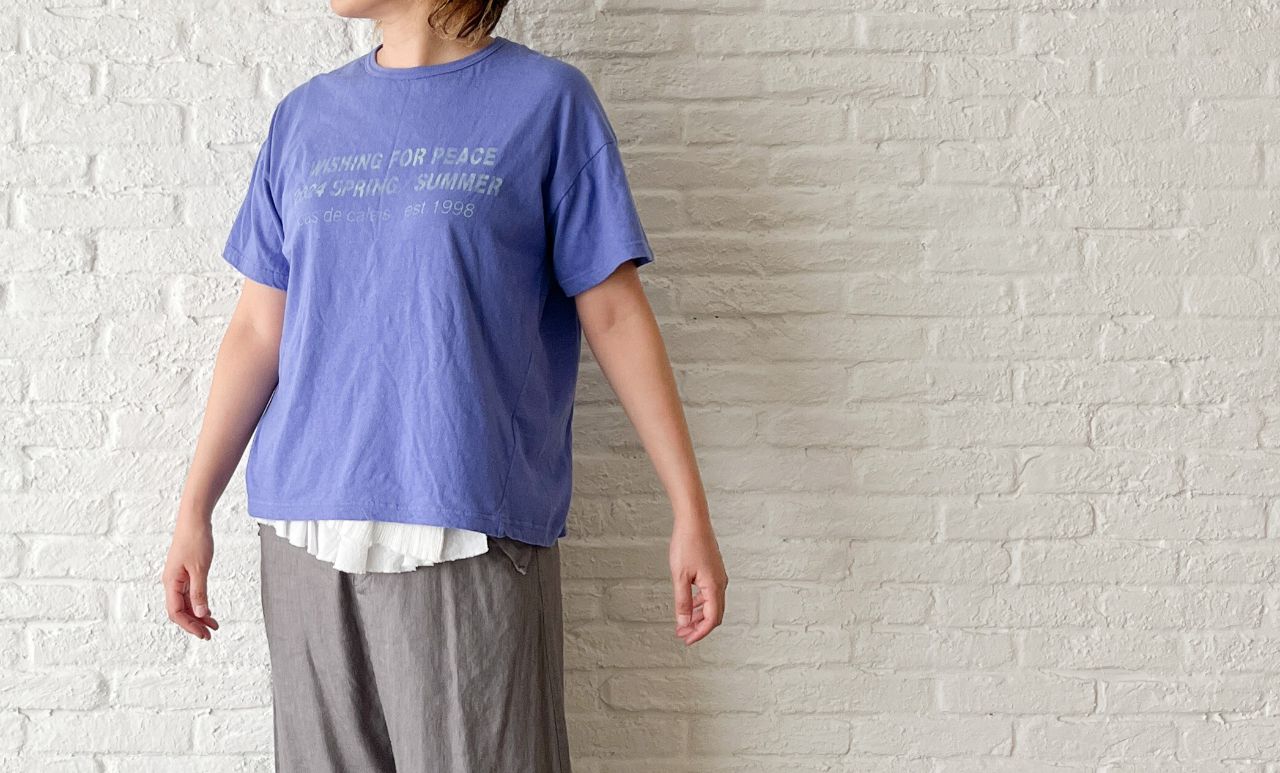 定番素材のラフィー&コーマ天竺の柔らかな素材感のTシャツに、ステンシルプリントを入れました。