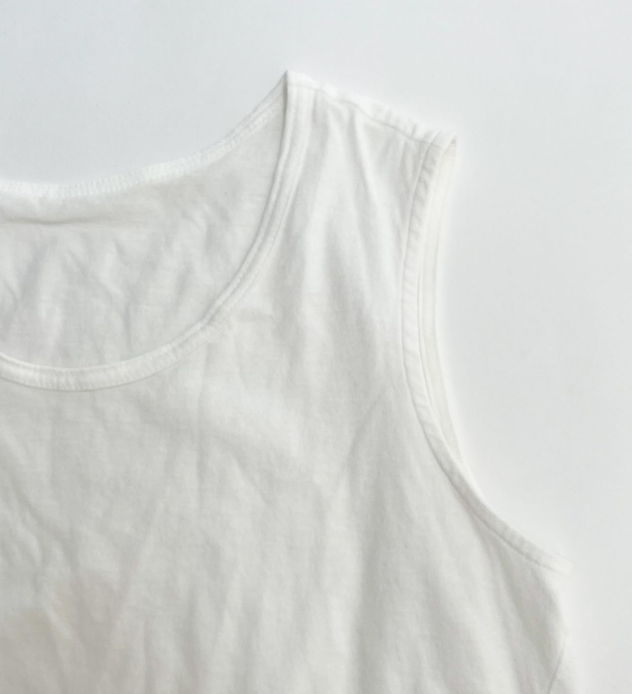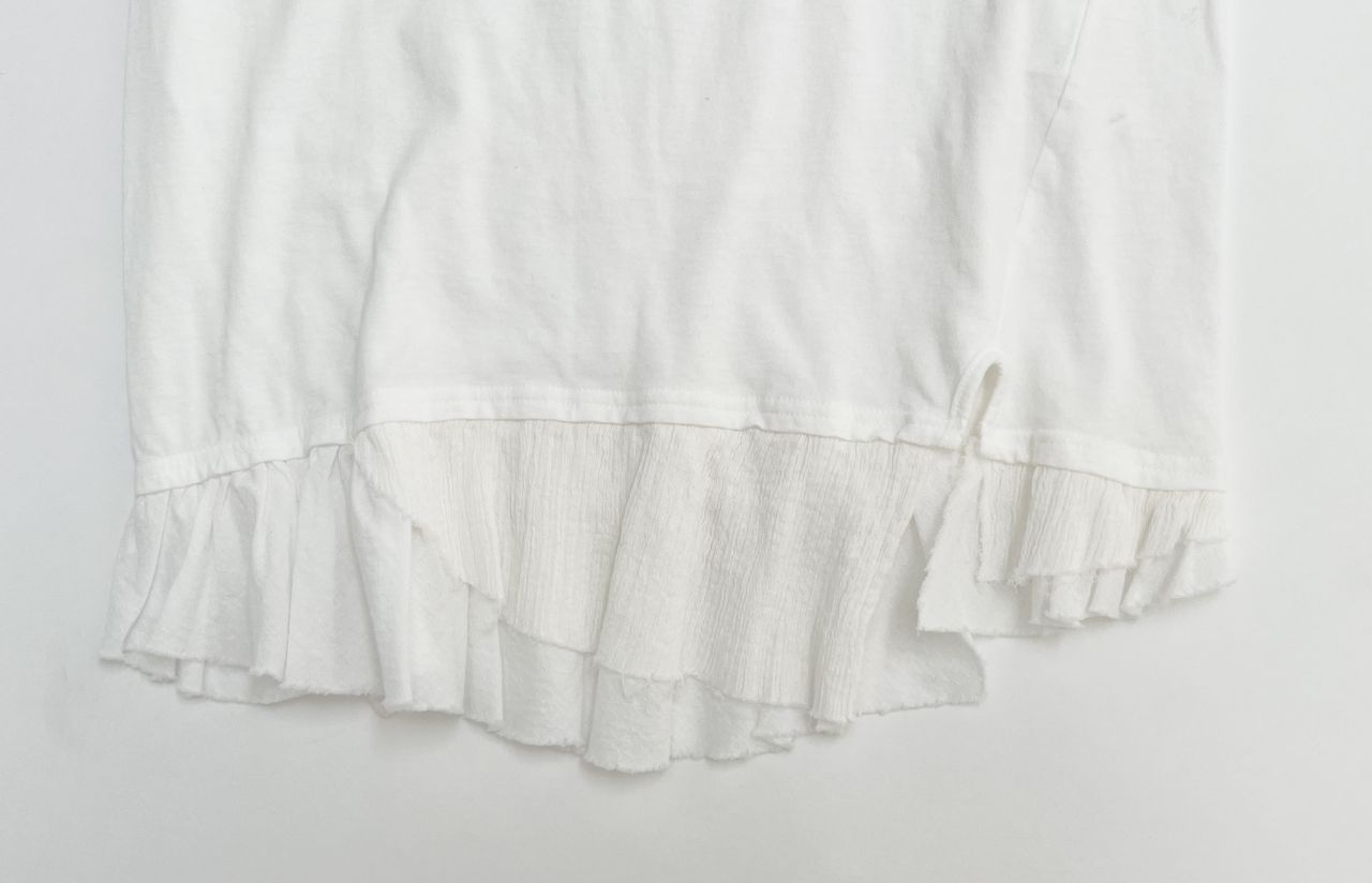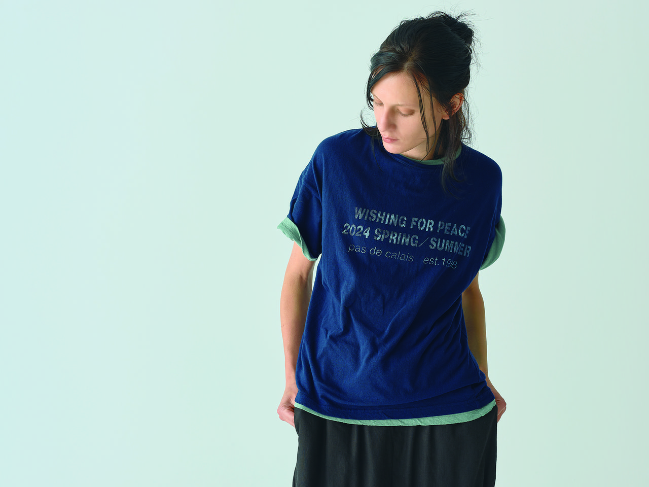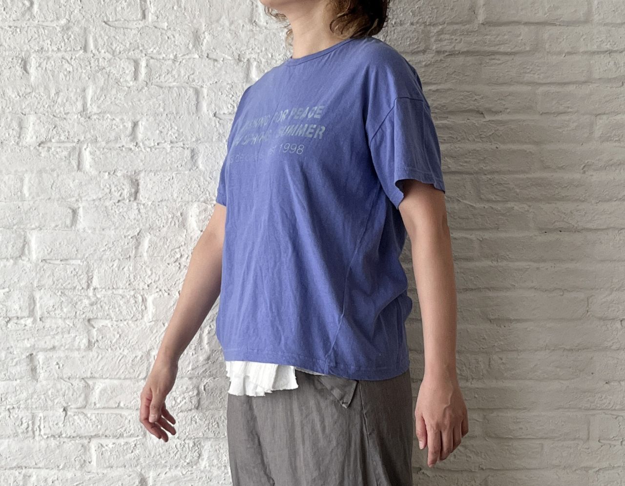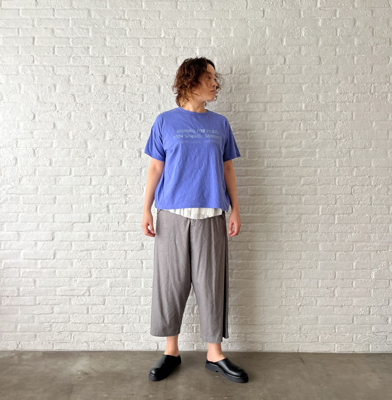 定番素材のラフィー&コーマ天竺の柔らかな素材感のTシャツに、ステンシルプリントを入れました。