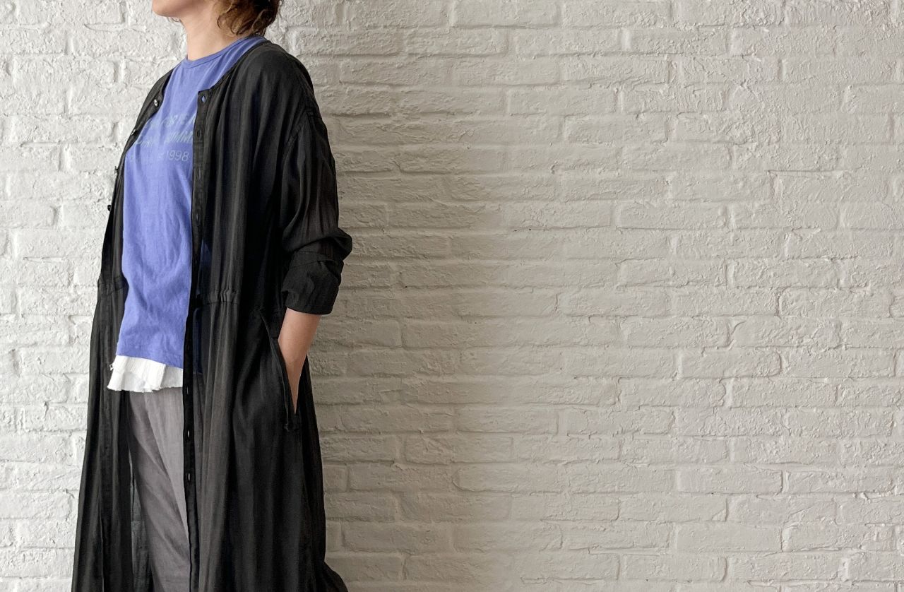 クルーネックなので衿元がすっきりして羽織としても◎。