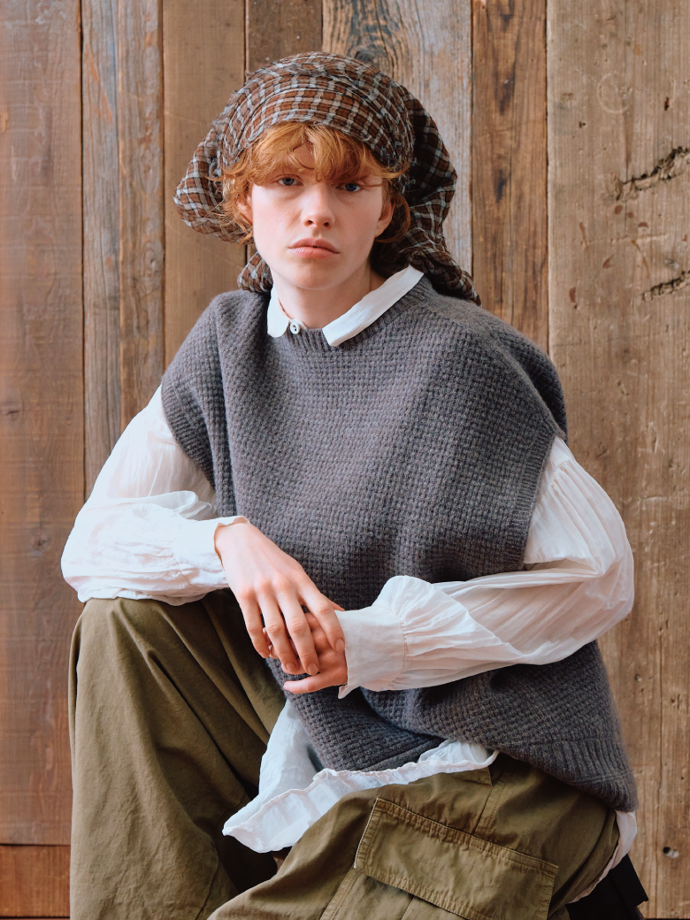 no.2606【期間限定!10%OFF】カシミヤラム柄編み ボートネックベスト