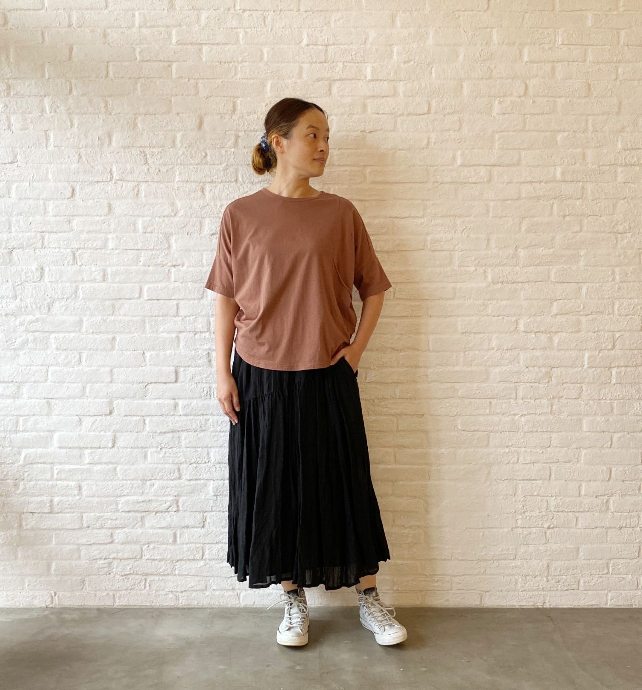 《着回しコーディネート》レンガ染め Tシャツ