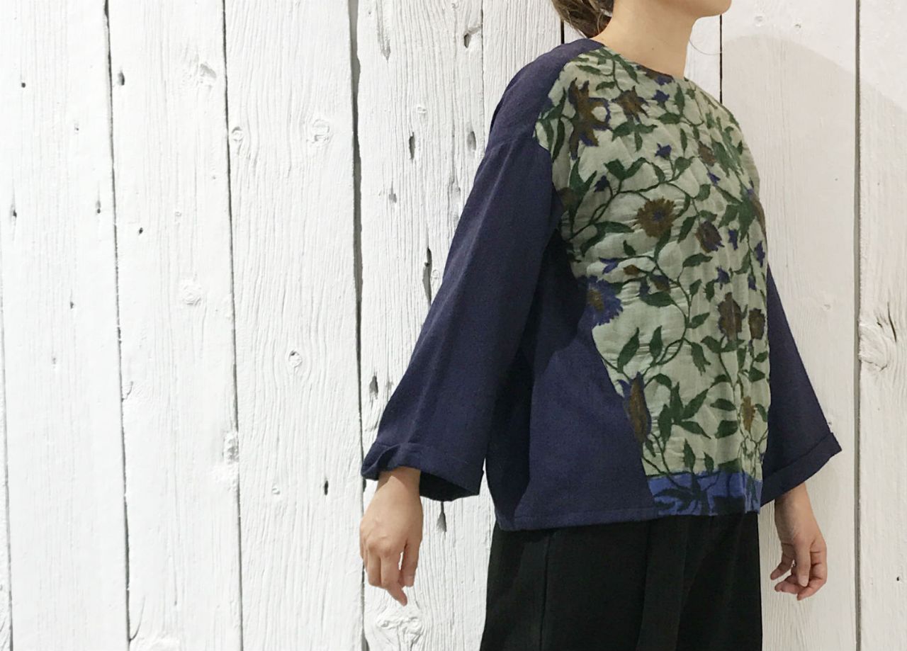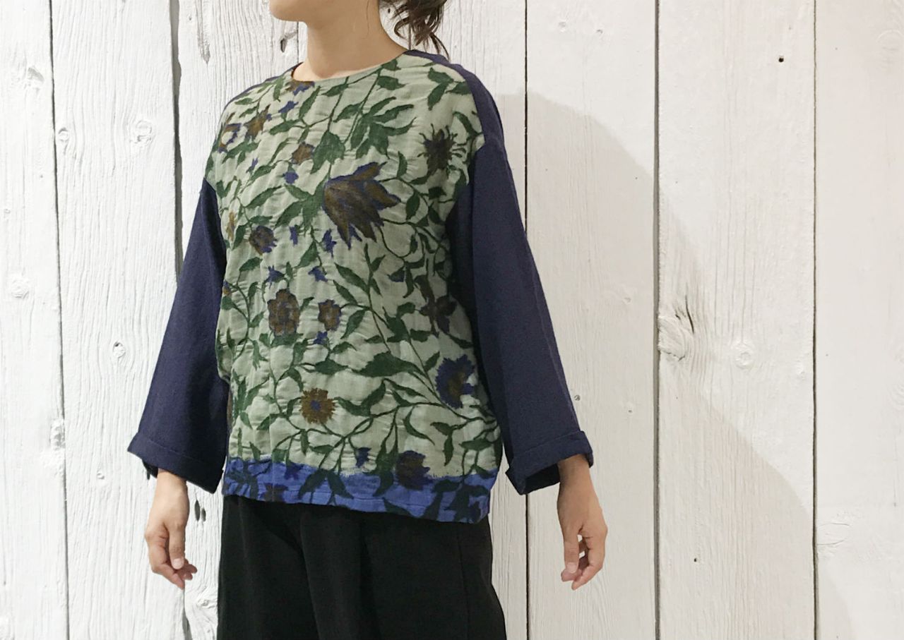 その中から、入荷後すぐに色欠けしてしまいご紹介できなかった、更紗柄ブラウスのご紹介です。