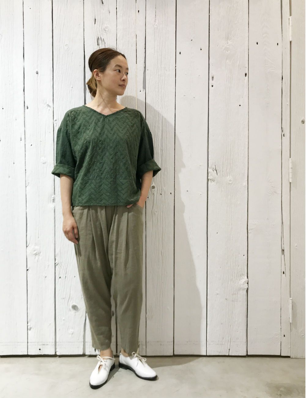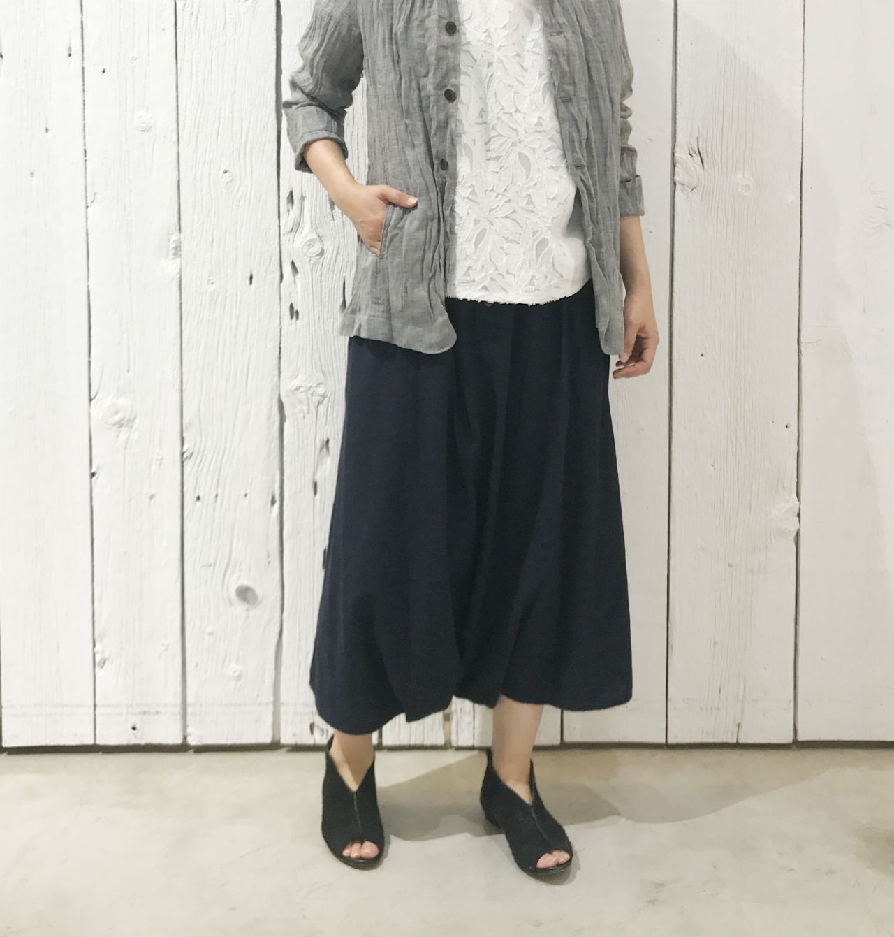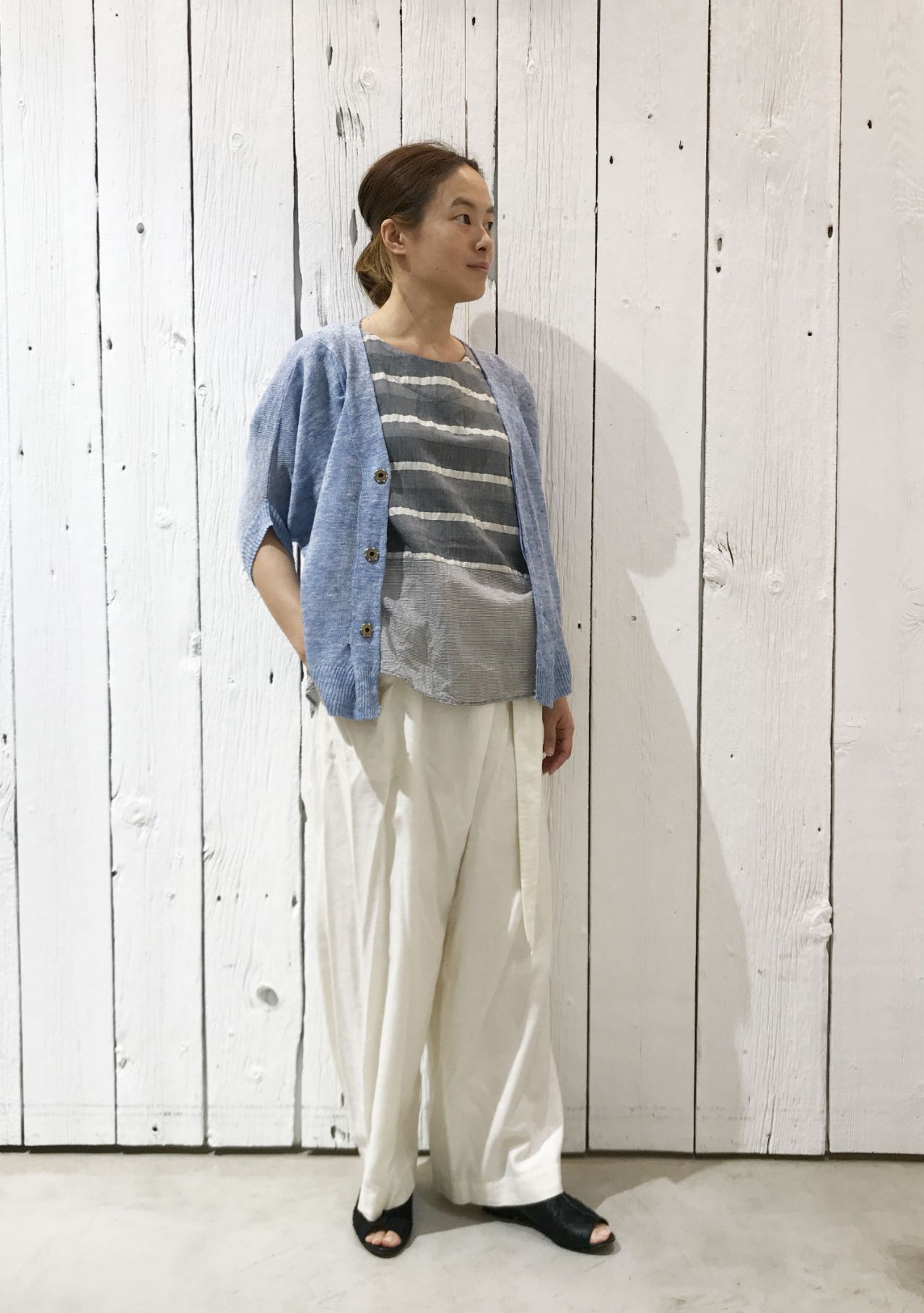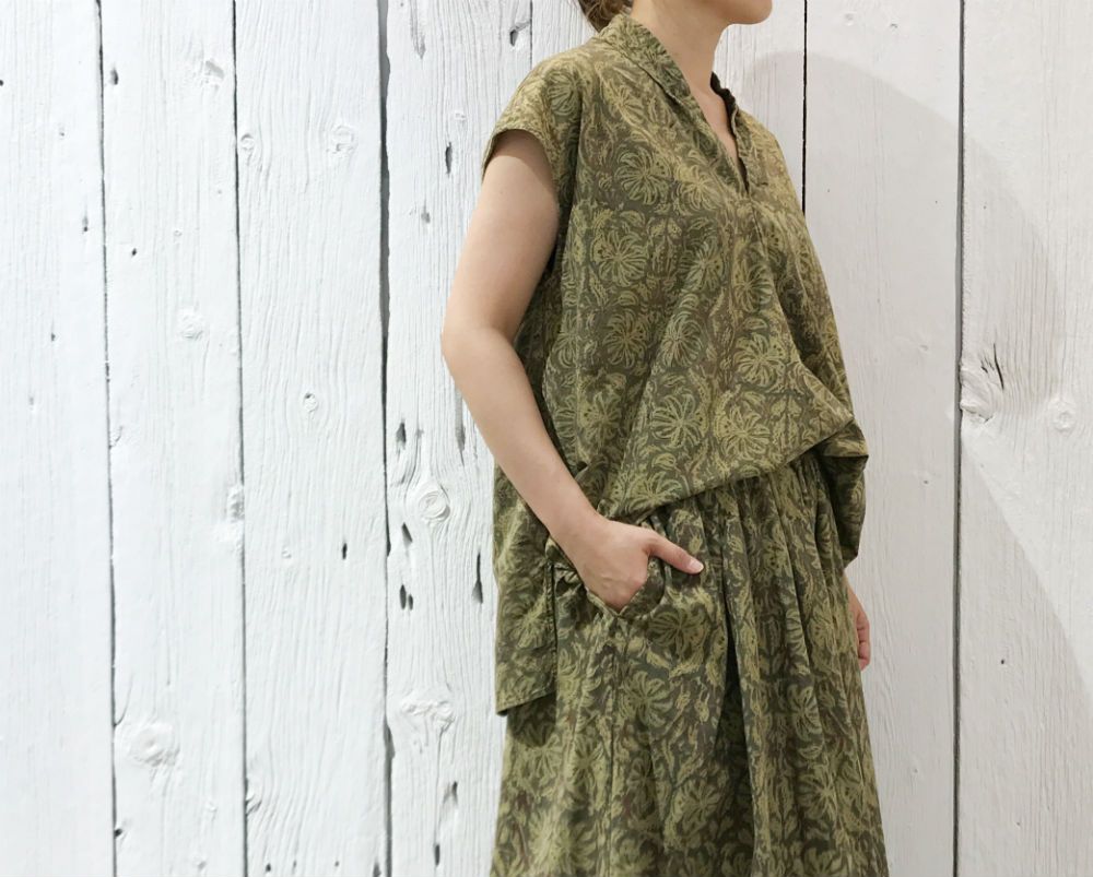 ブロックプリントのセットアップや、リネンのブラウスなど夏に活躍するアイテムばかりです。