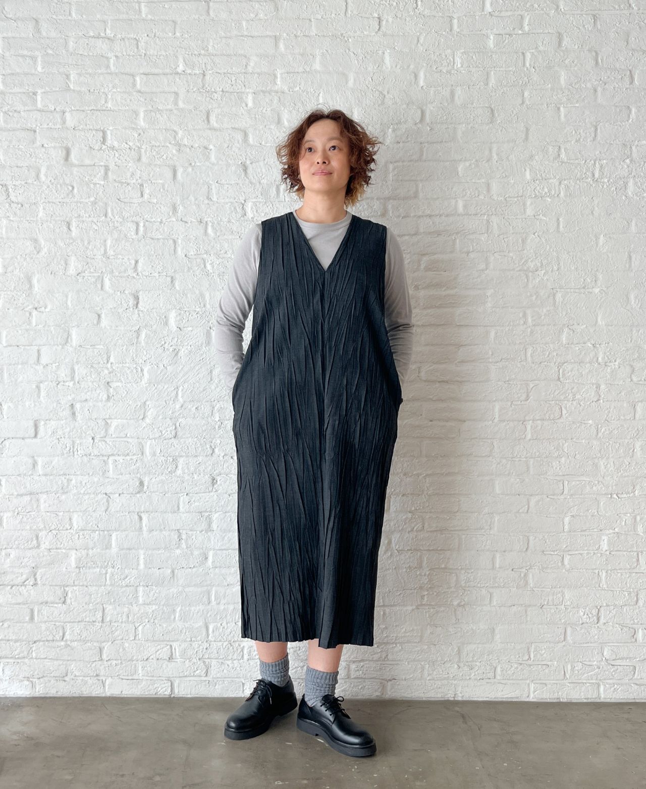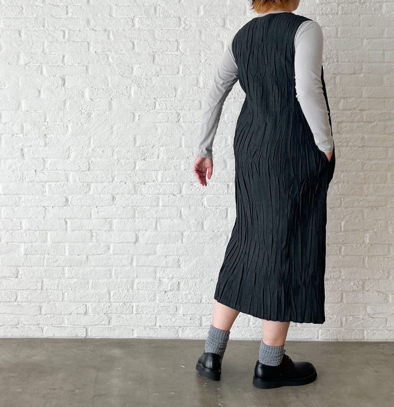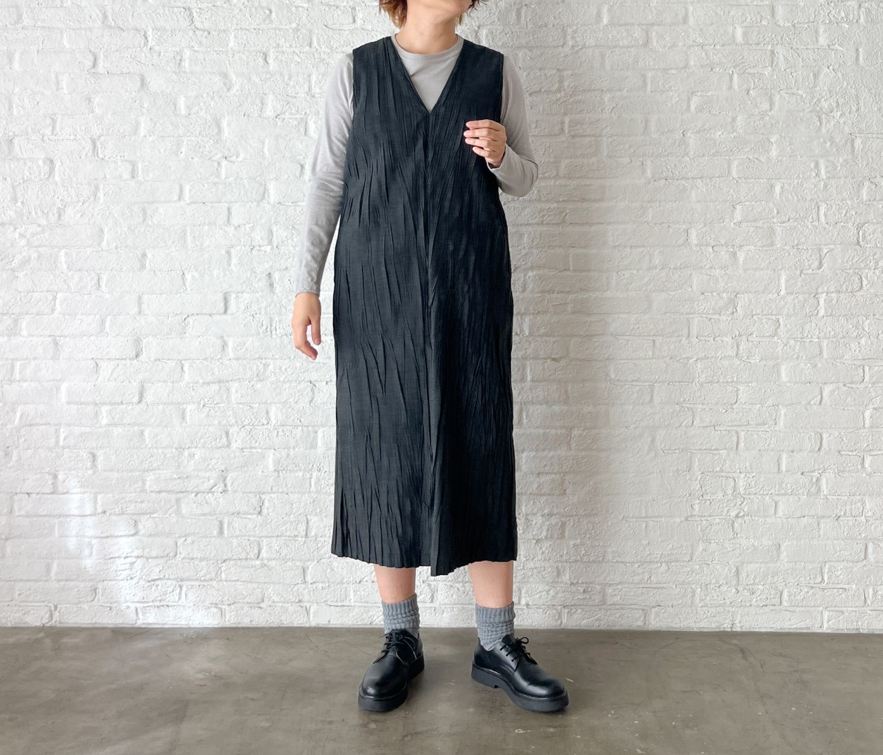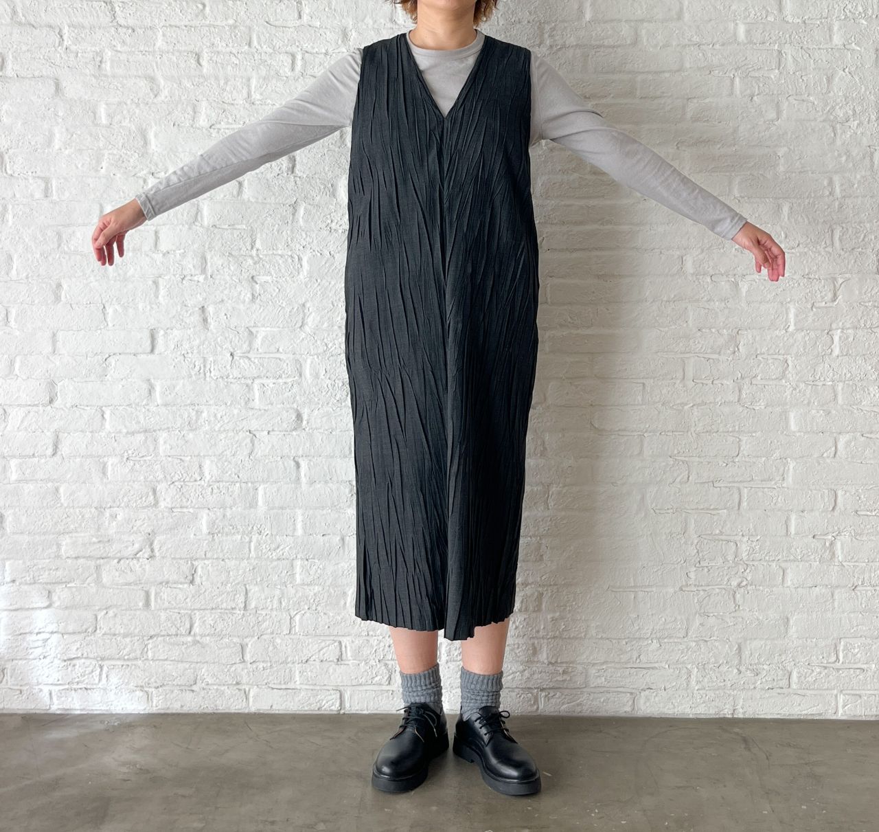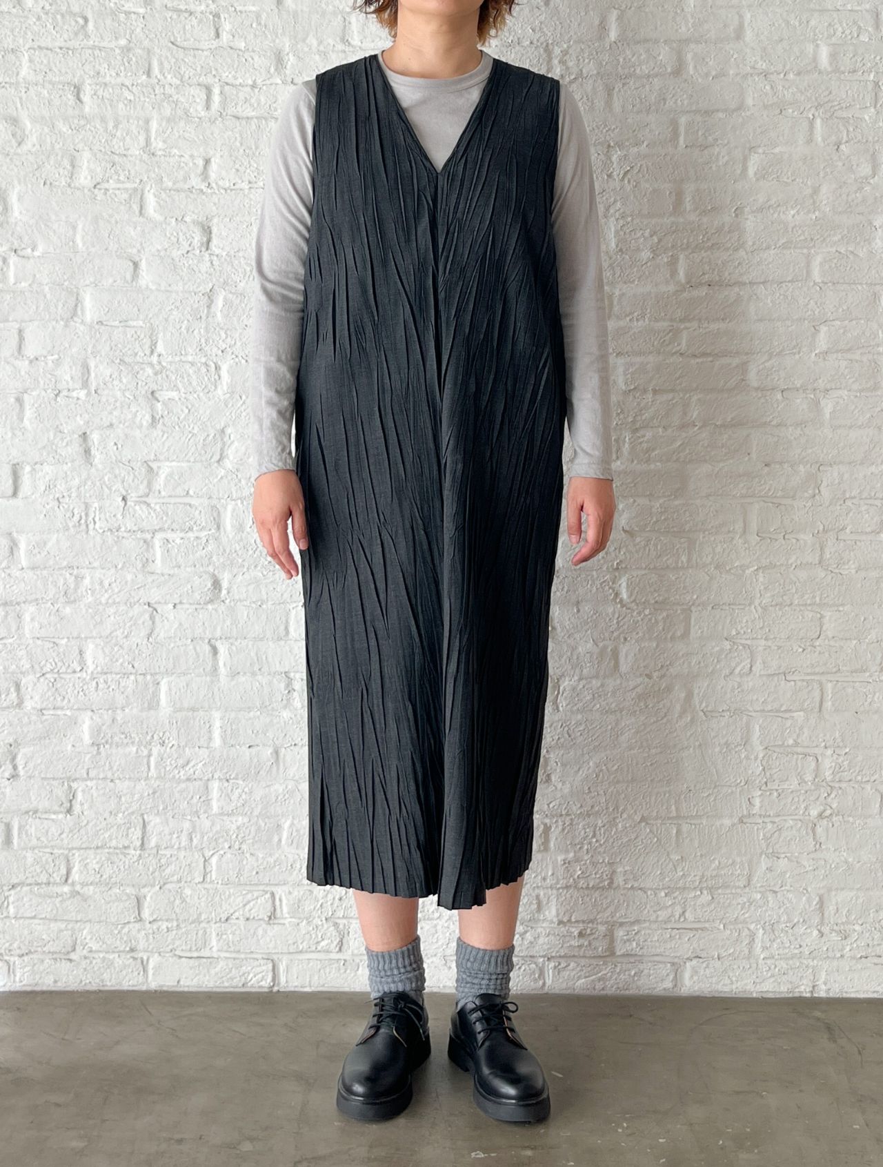 no.4492  トロストレッチ ハンドプリーツワンピース