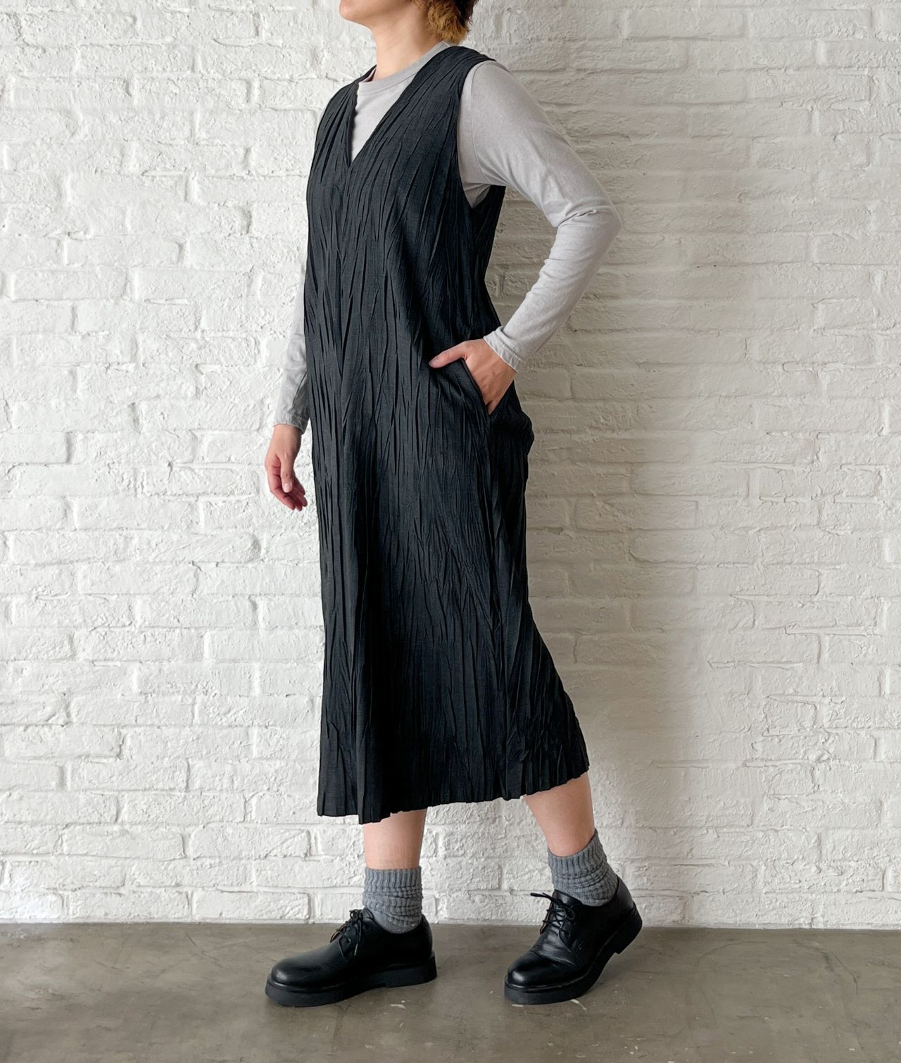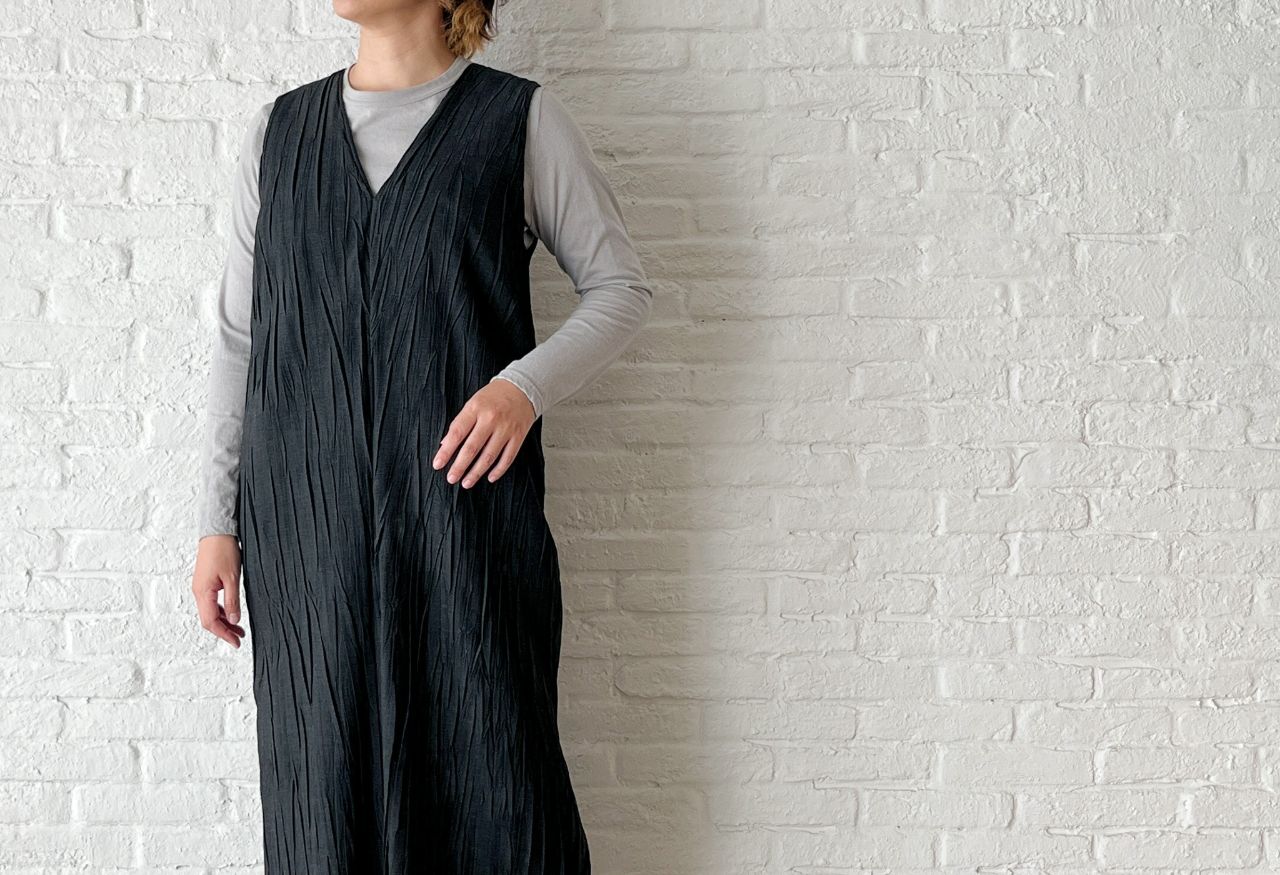 トロストレッチ ハンドプリーツワンピース