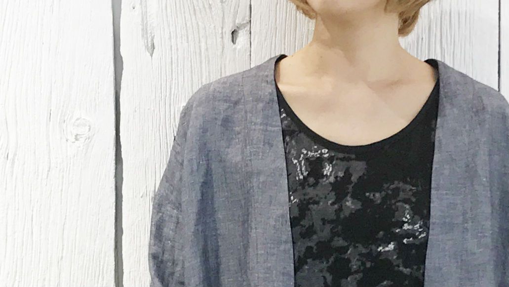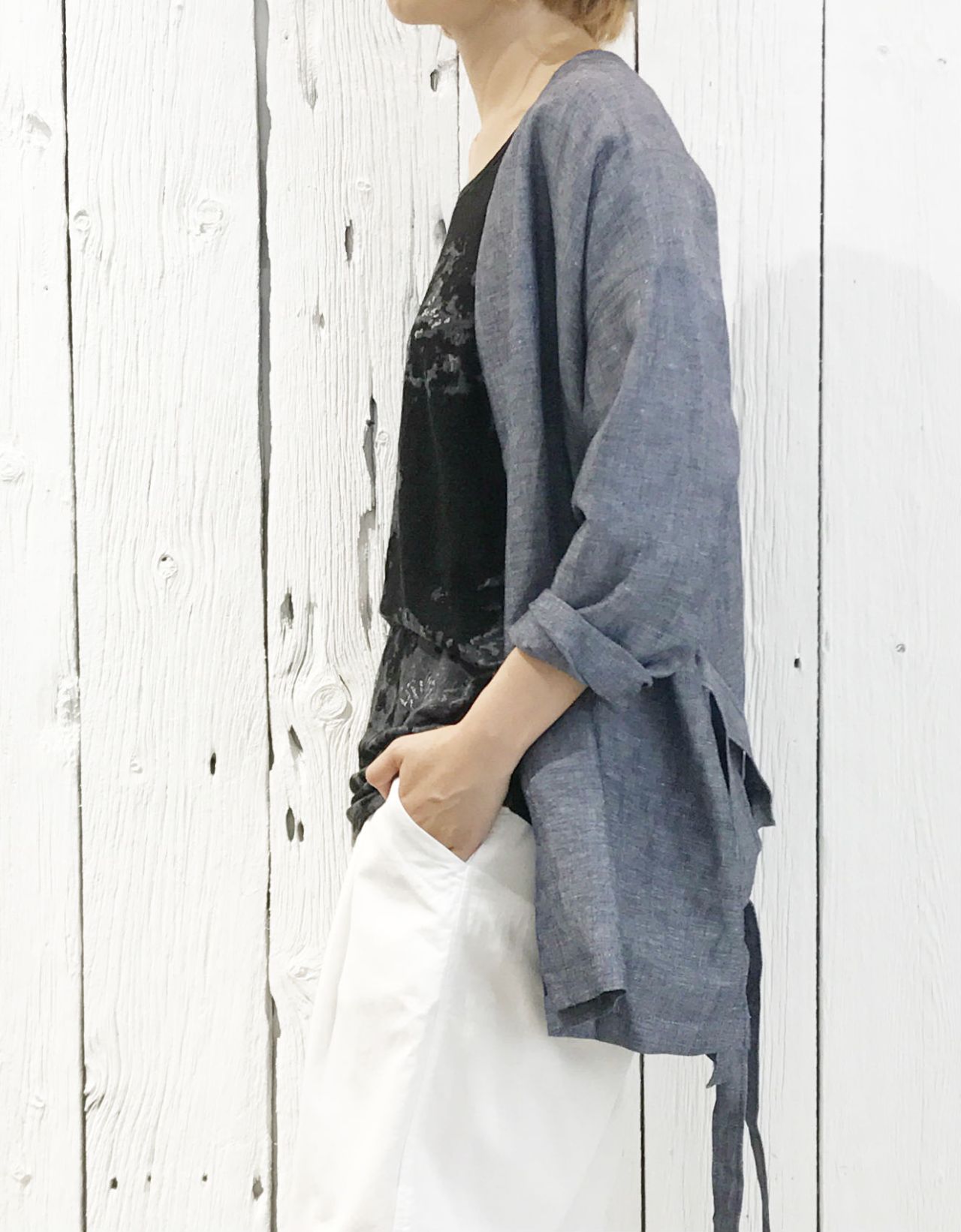 夏といえばのカラー、ブルーを羽織って。
