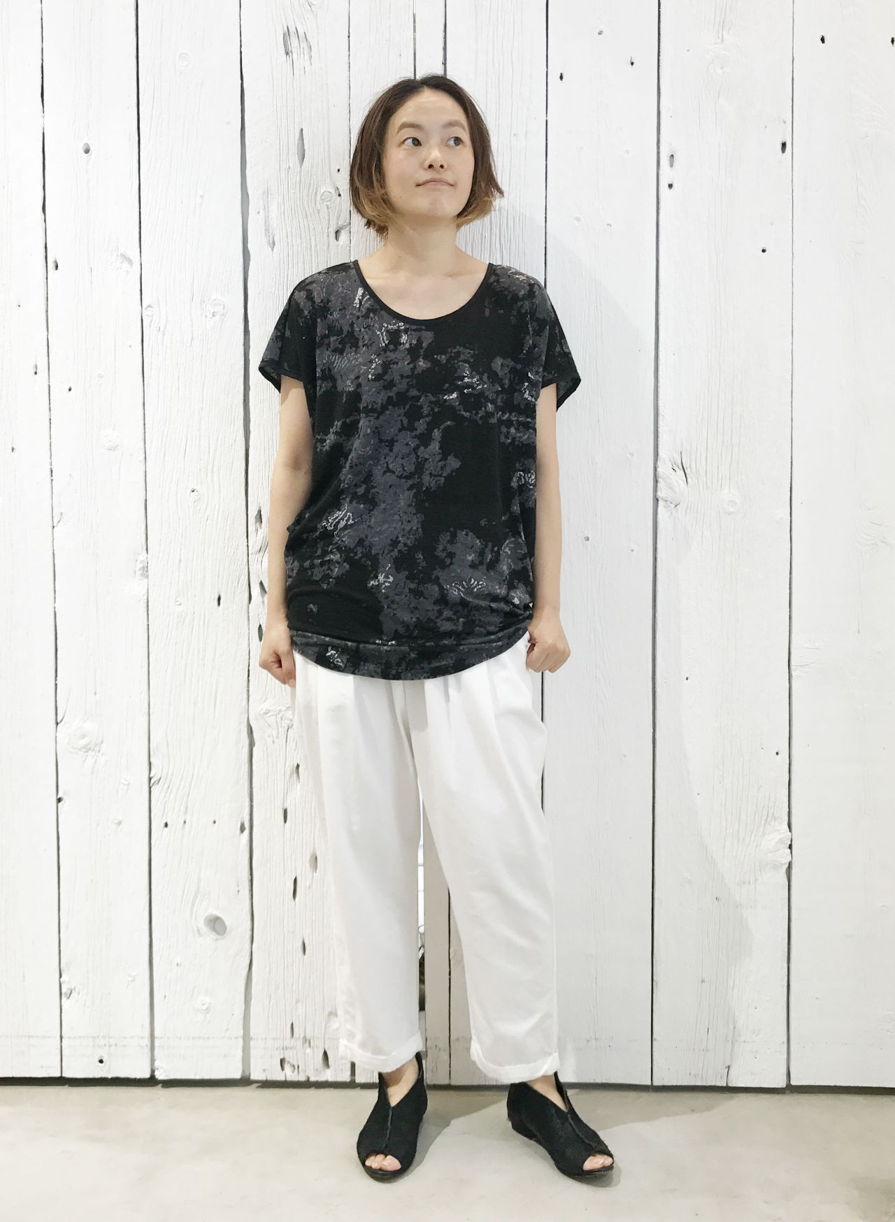 本日は、店舗でも人気の柄トップスのご紹介です。