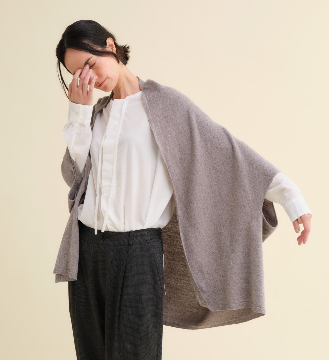 バサッと羽織れる、秋の最初にちょうどいいコットンウール素材です。