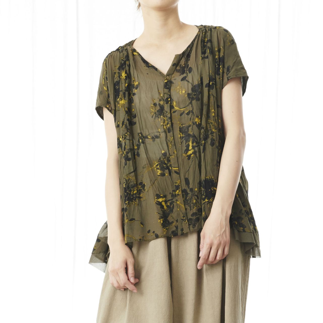 no.6932 キュプラコットンボイルフラージュプリント ブラウス