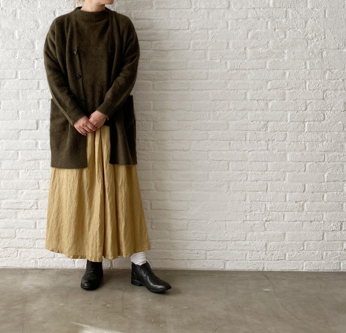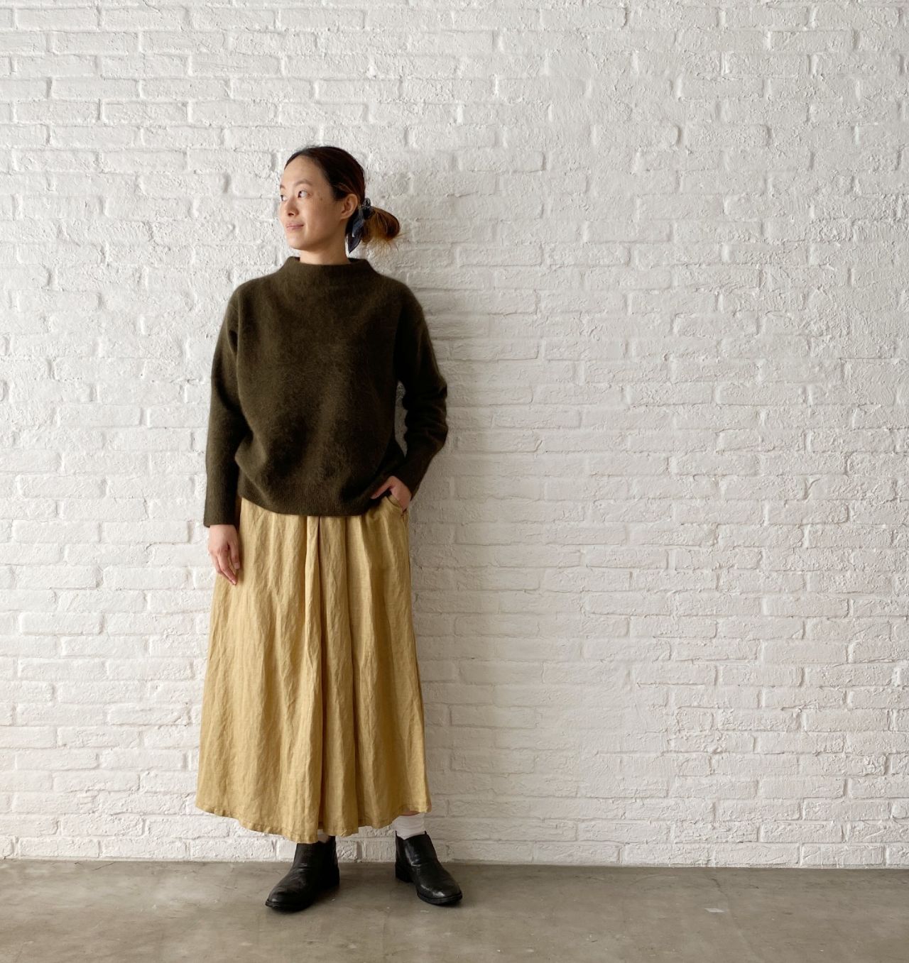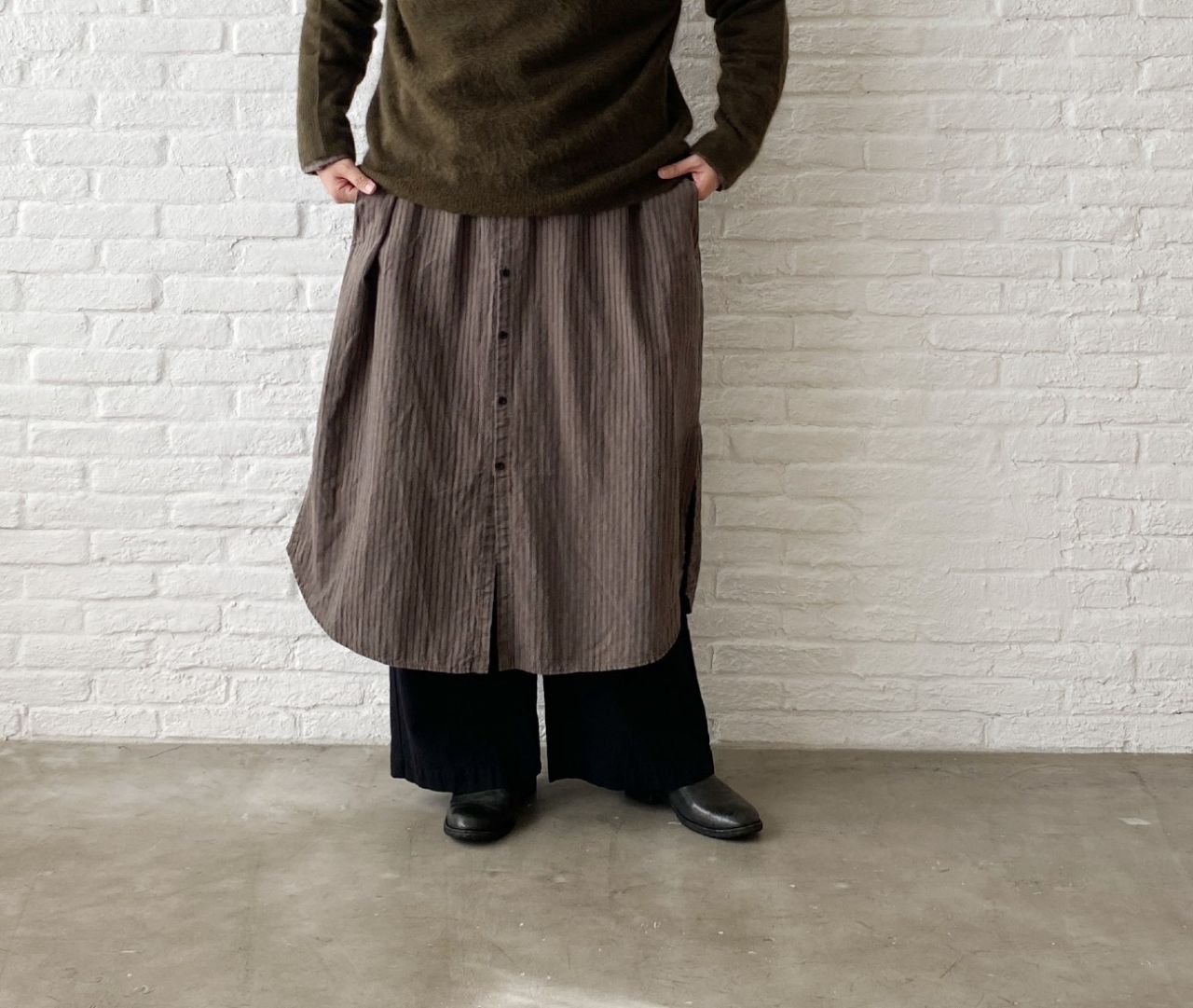 寒くなったらニット+ロングブーツで合わせたいスカートです。
