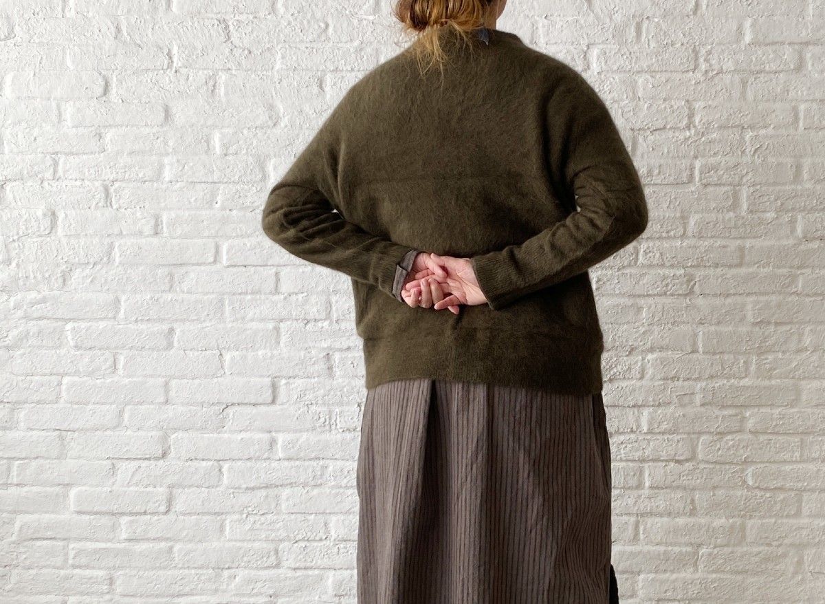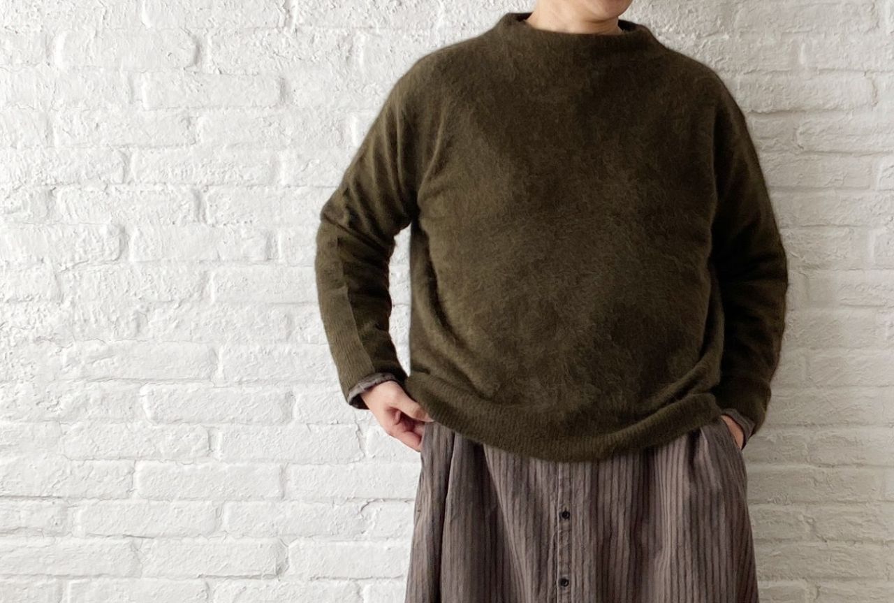ボトルネックのような襟ですが首にぴったりしない分、着やすさがあります。