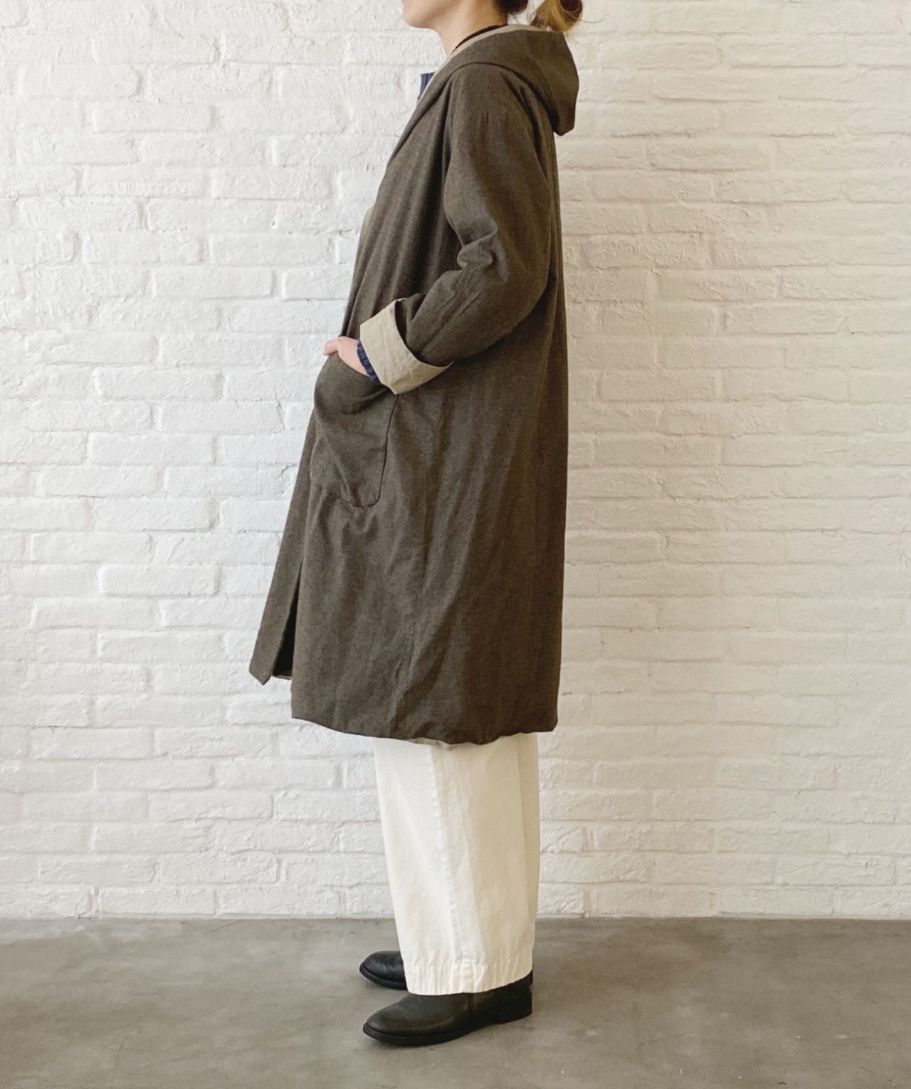 前を閉めてもゆったりしたサイズ感なので、中に着込んでいただけます。