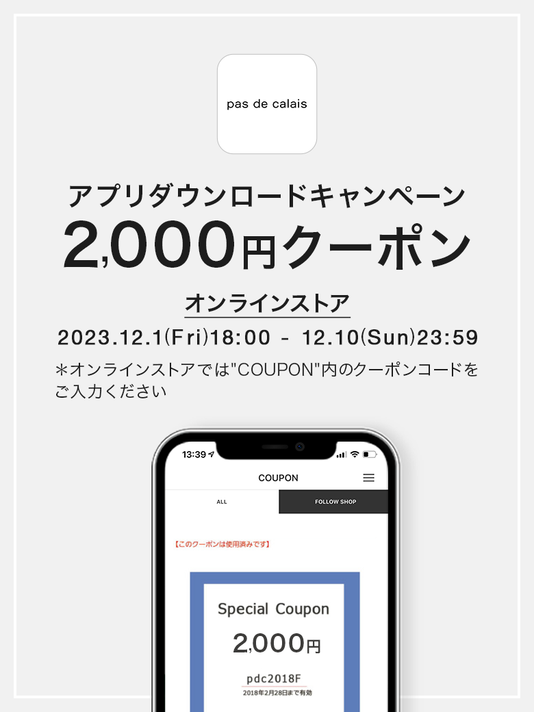 pas de calais アプリをダウンロードいただいたお客様全員が、その場でご利用いただける 期間限定《¥2,000クーポン》を発行しています。