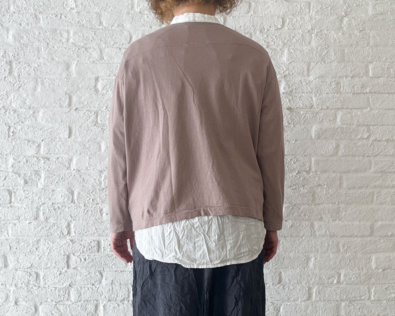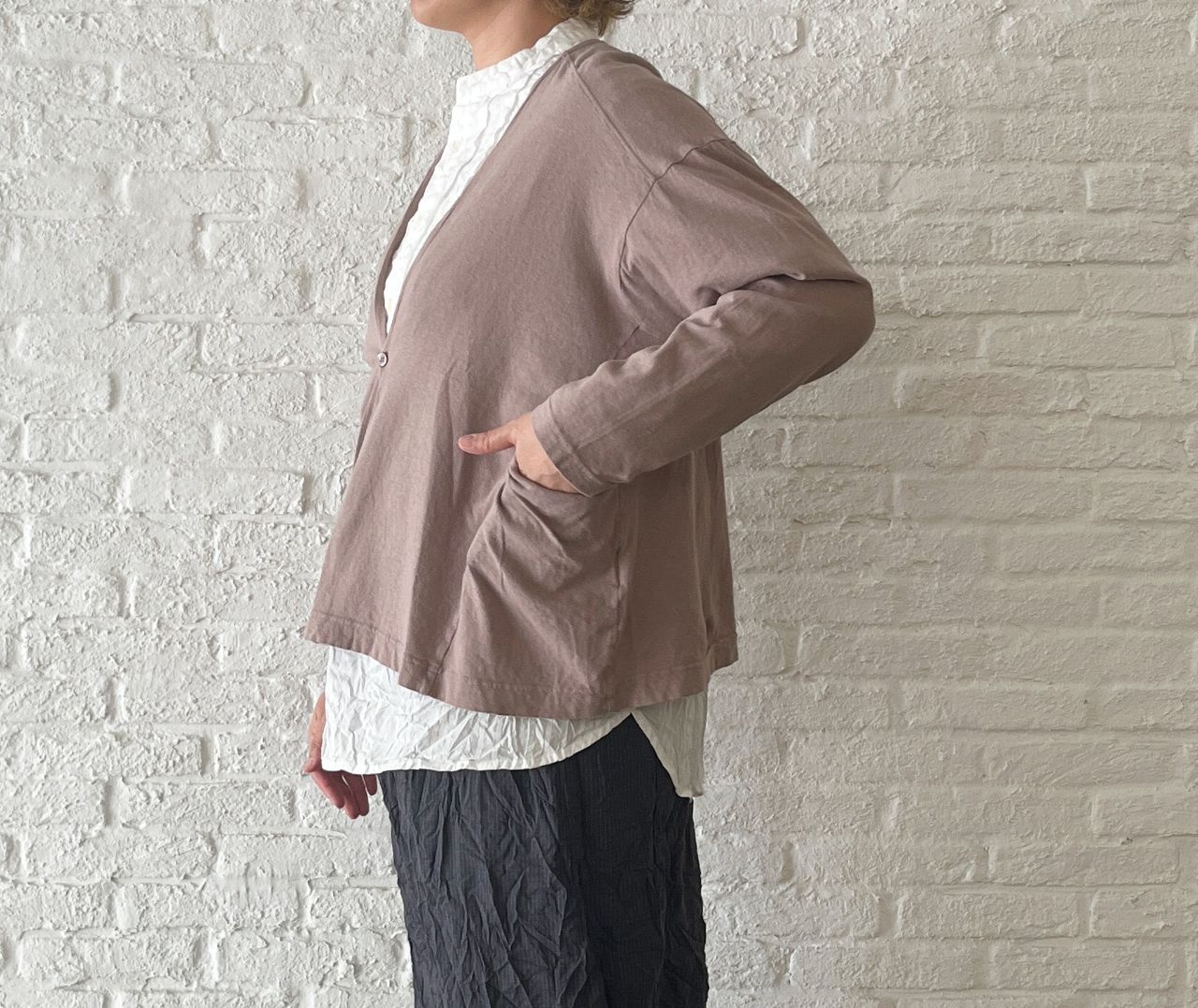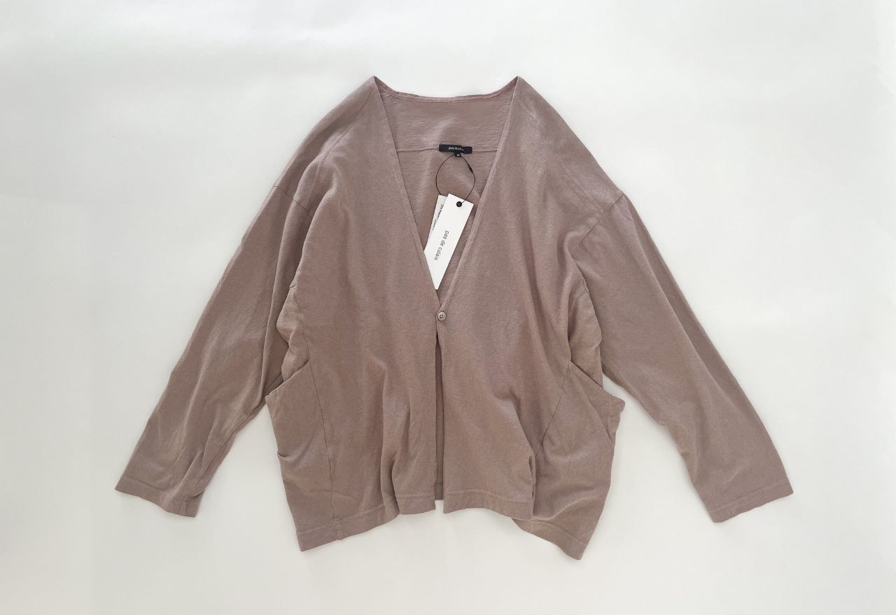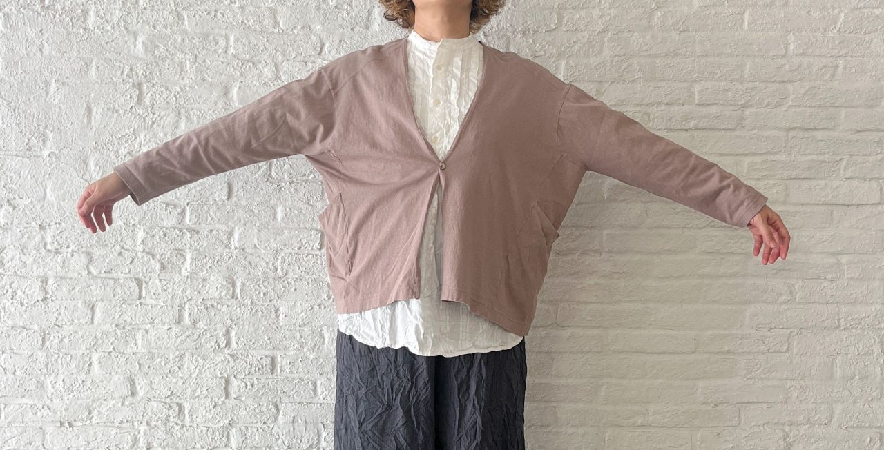 明るいカラーが着たくなる春には、カットソー素材の緩やかなカーディガンを。