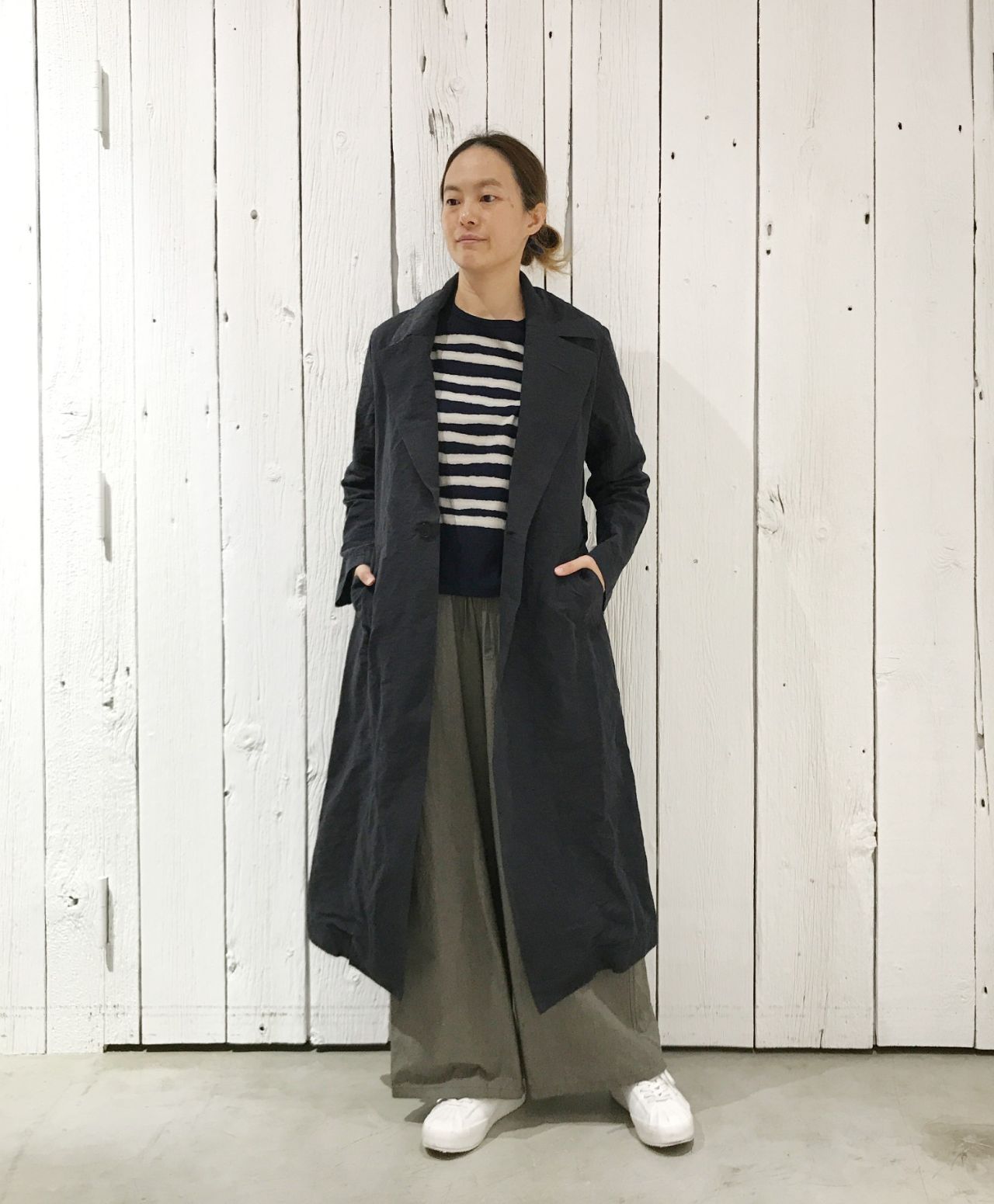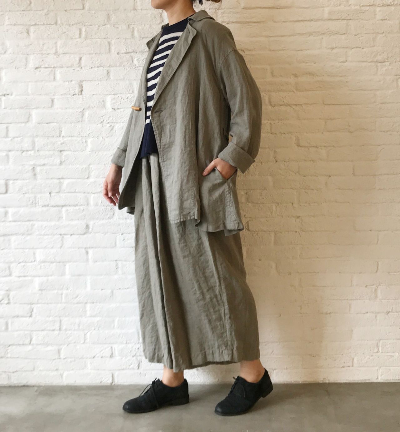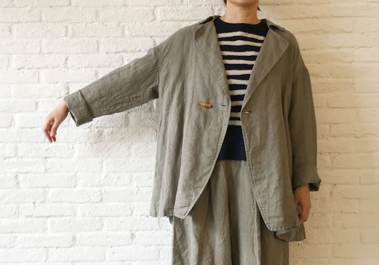 コットン×リネンを高密度に織った、きちんと感あるコートで合わせても。