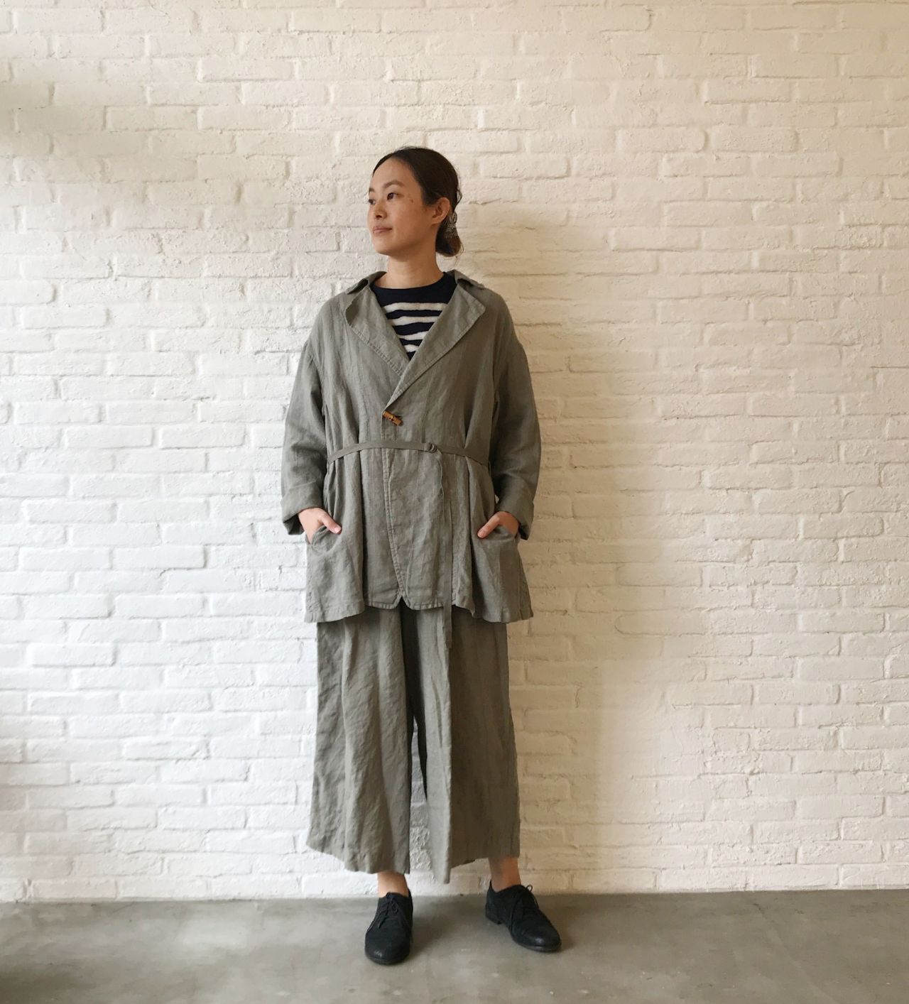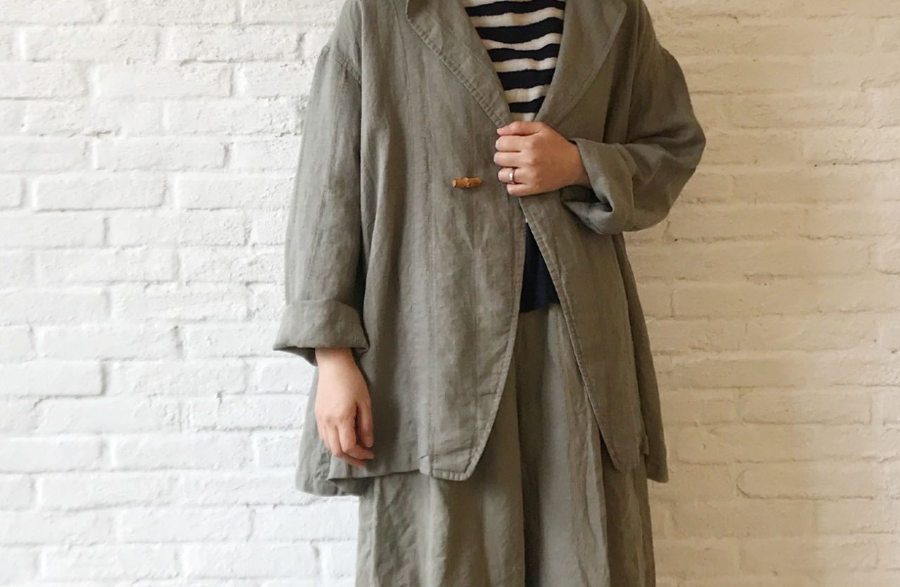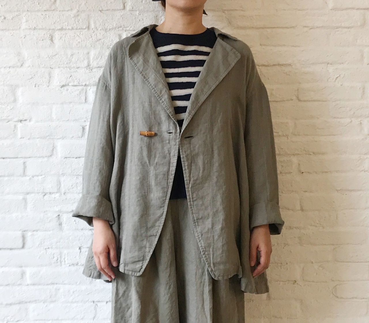 コットン×リネンを高密度に織った、きちんと感あるコートで合わせても。
