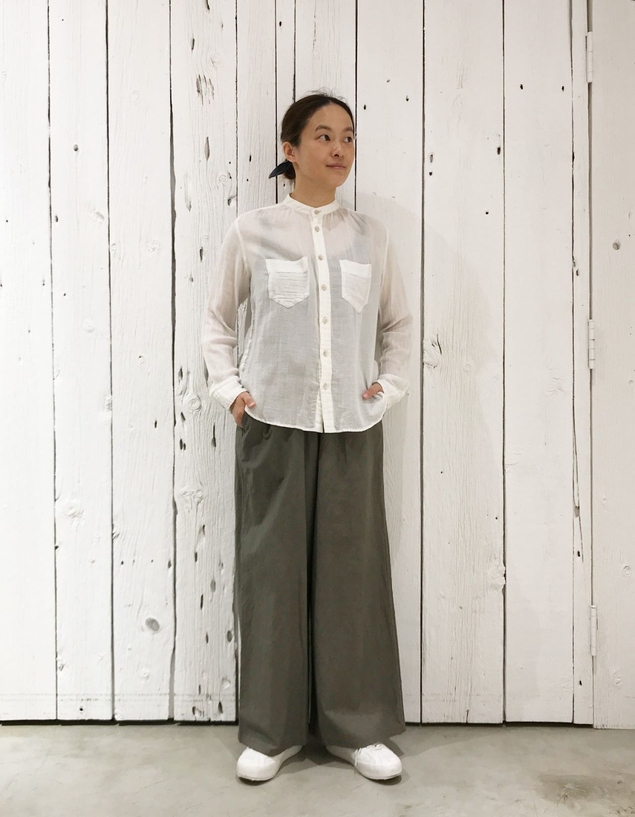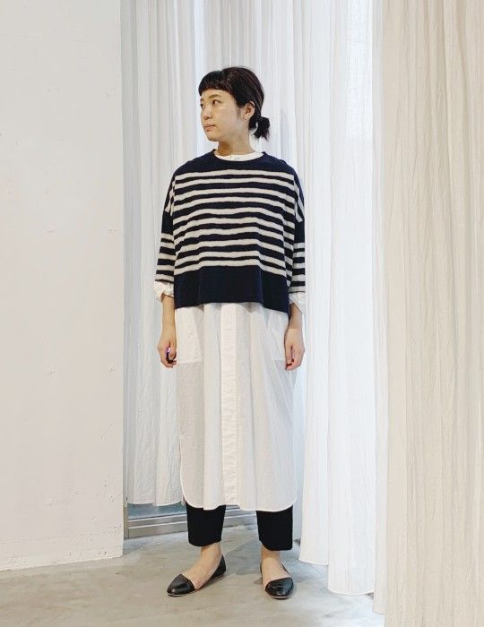 ゆったりしているので重ね着も◎な、秋口にもちょうどいい着方です。