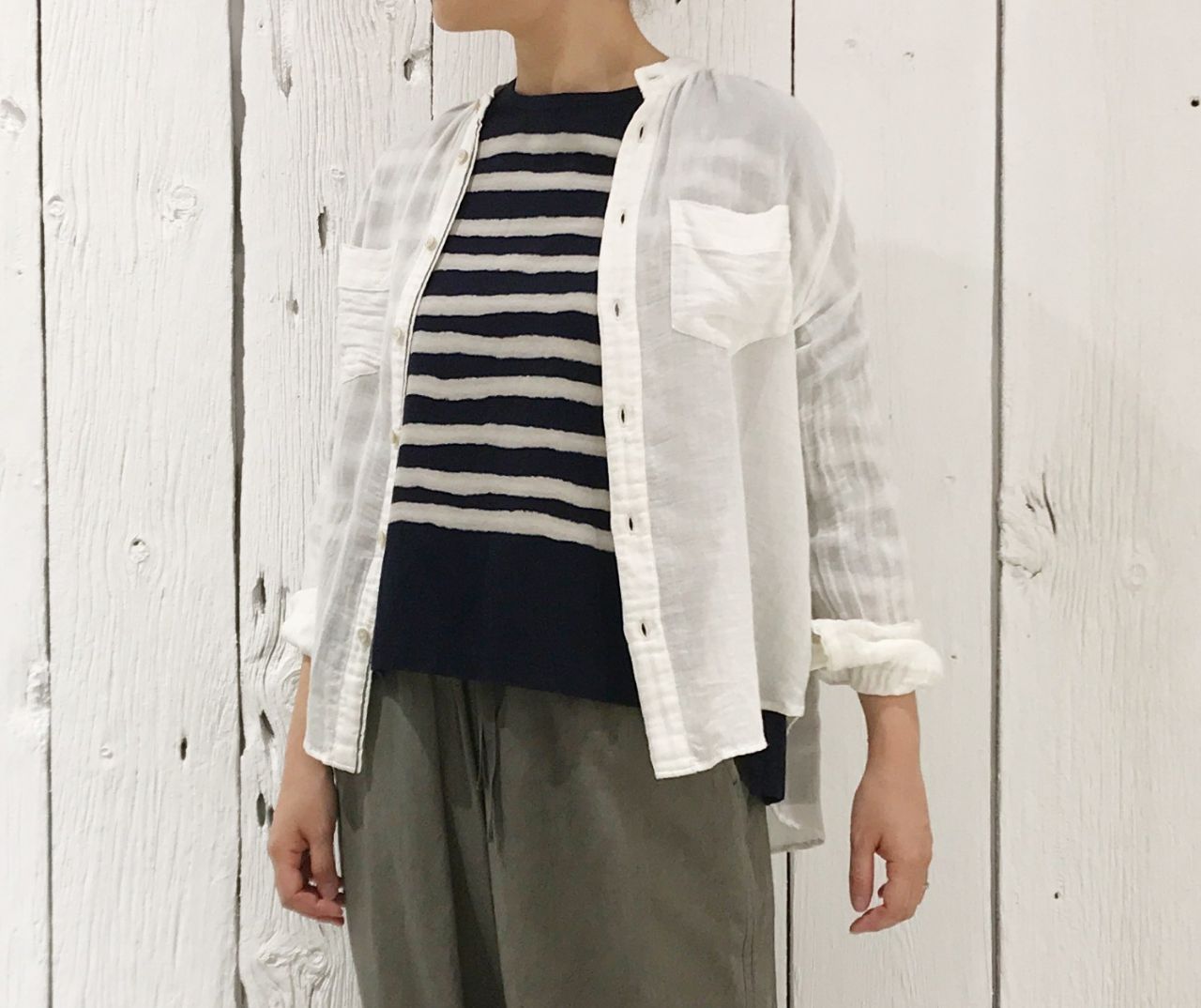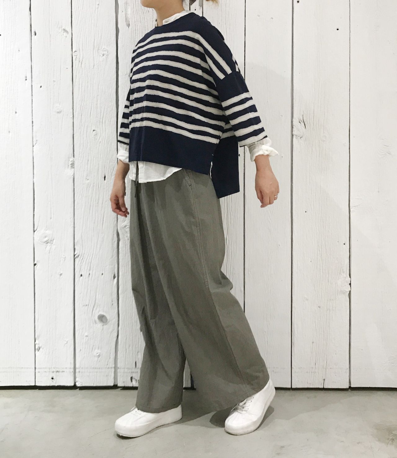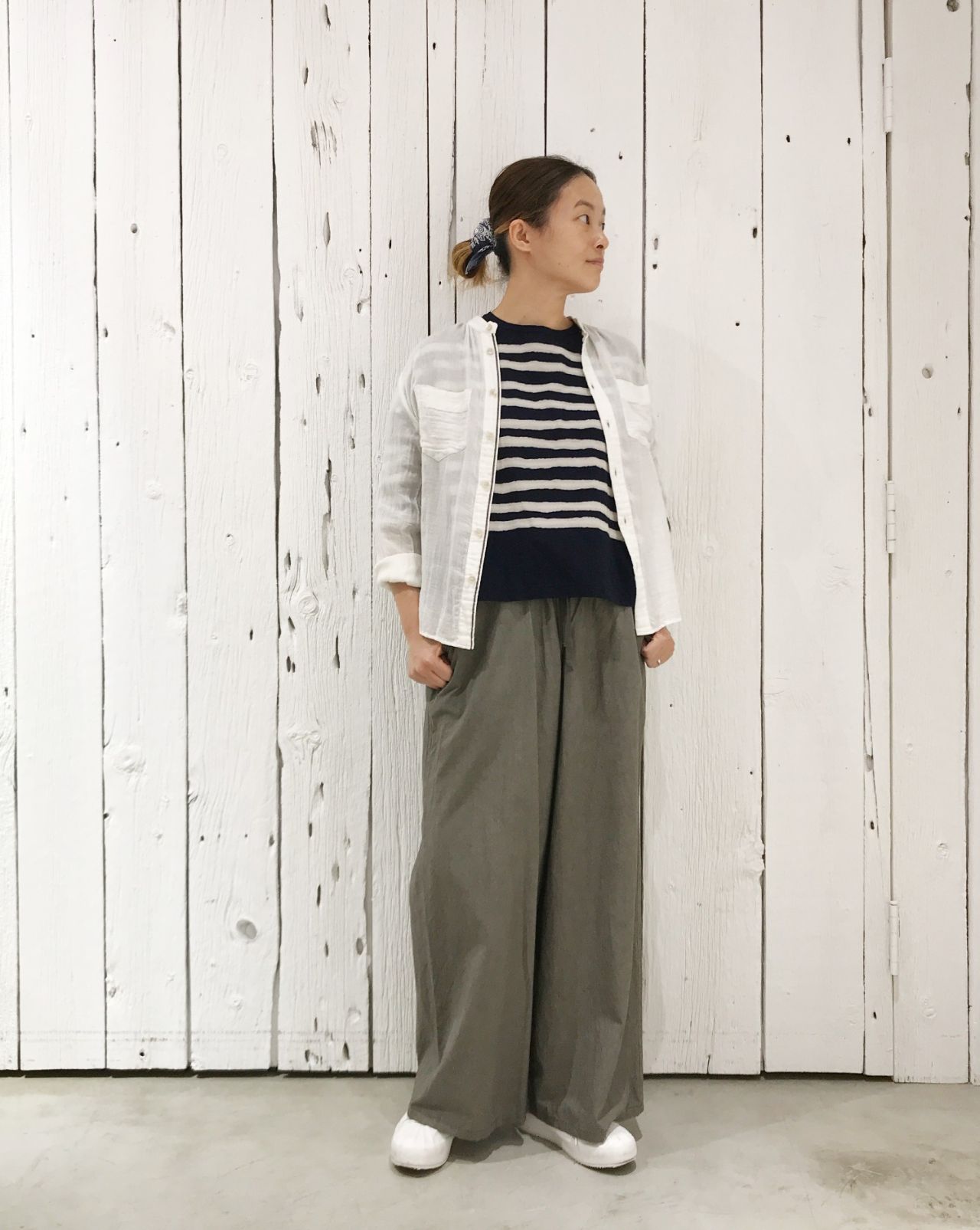 麻混のカジュアルなアイテムなので、ボーダーとの相性も抜群です。