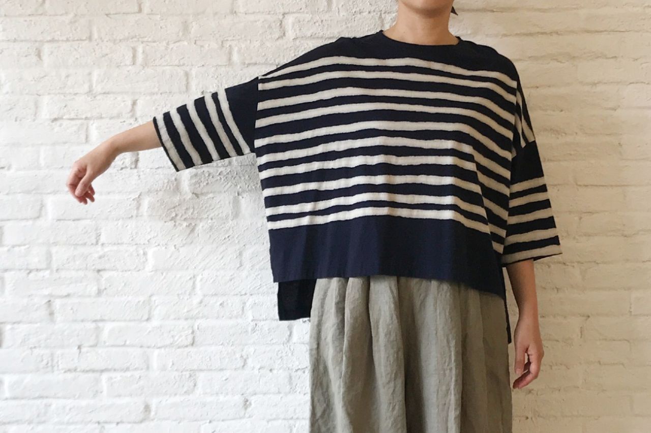 no.1050【期間限定!10%OFF】にじみボーダー 6分袖