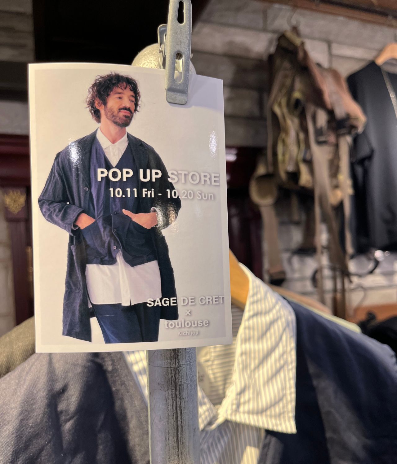 パドカレ東急吉祥寺店 から徒歩圏内のお店で、メンズブランド・sage de cret(サージュデクレ) の POP UP が、本日よりスタート!