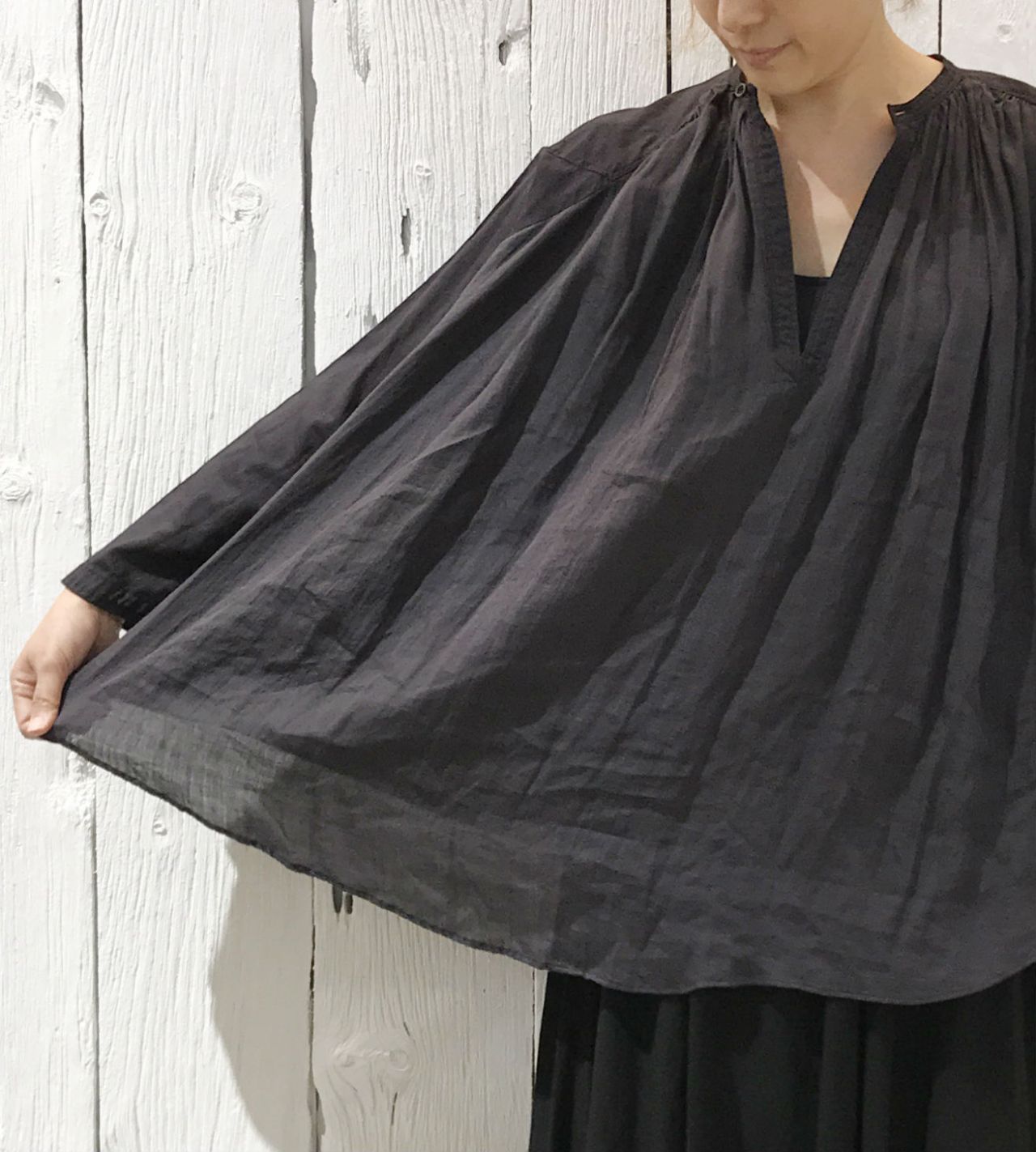 ブラウスは "根菜染め"