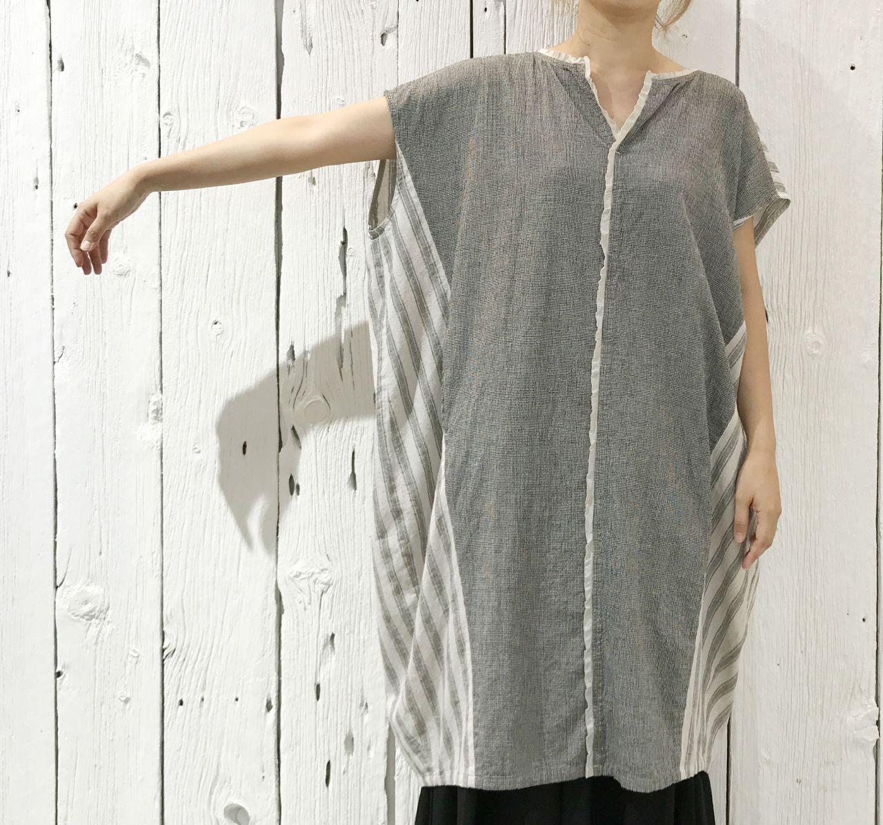 ワンピースをチュニック風に着るように
