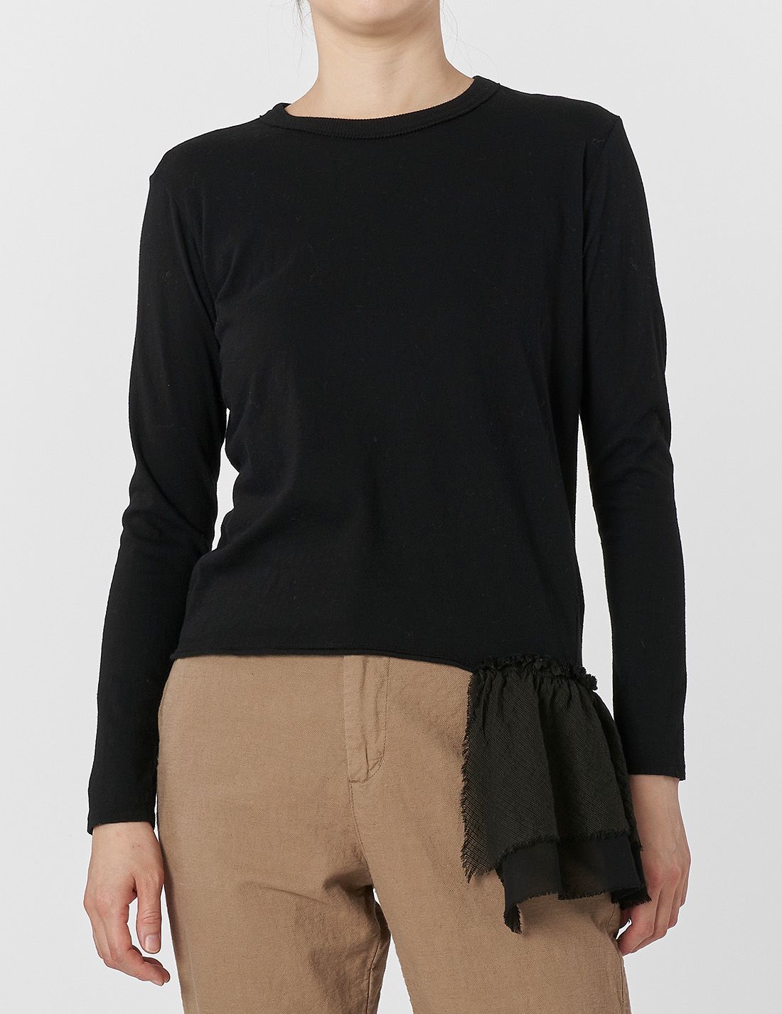 アシンメトリーに裾にフリルが付いた、レイヤードスタイルにおすすめなカットソー。