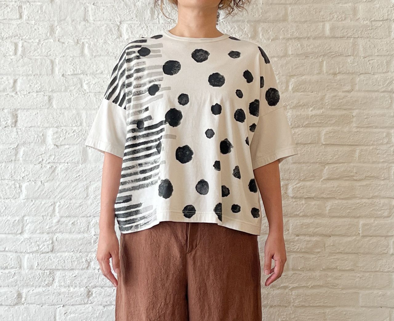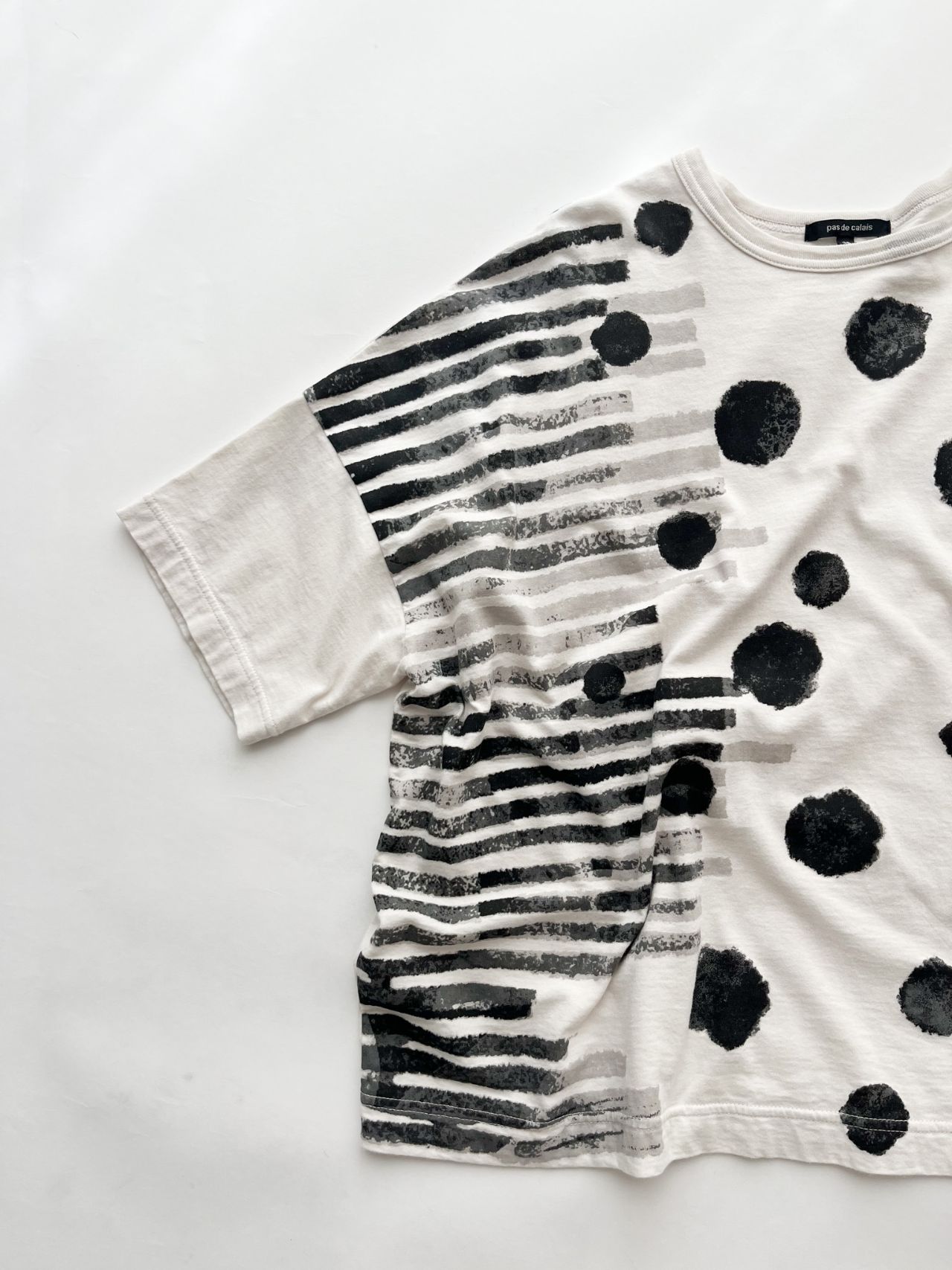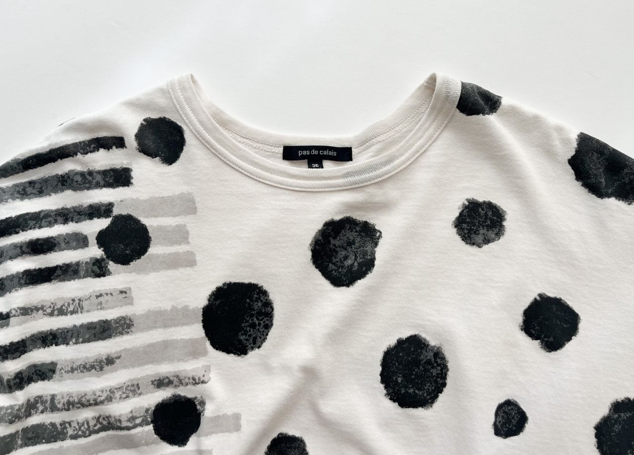 no.1922【W POINT】ボーダー&ドットプリント クルーネックプルオーバー