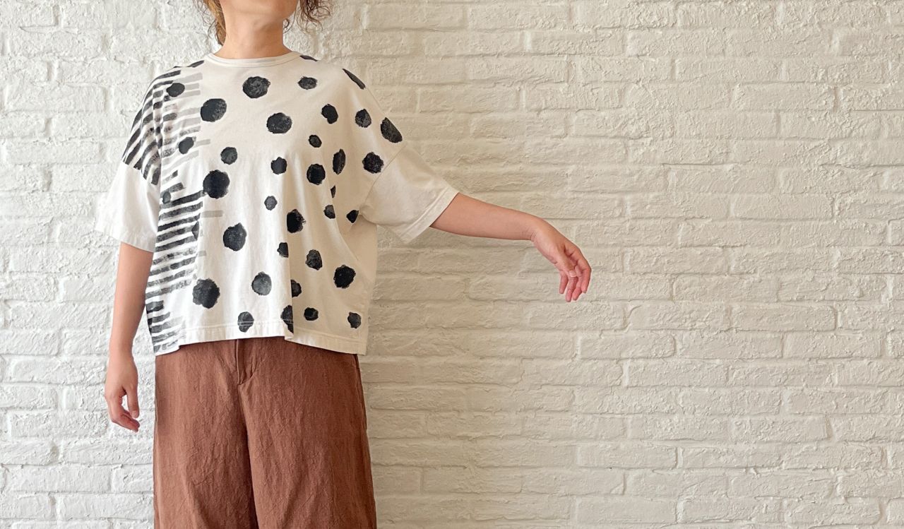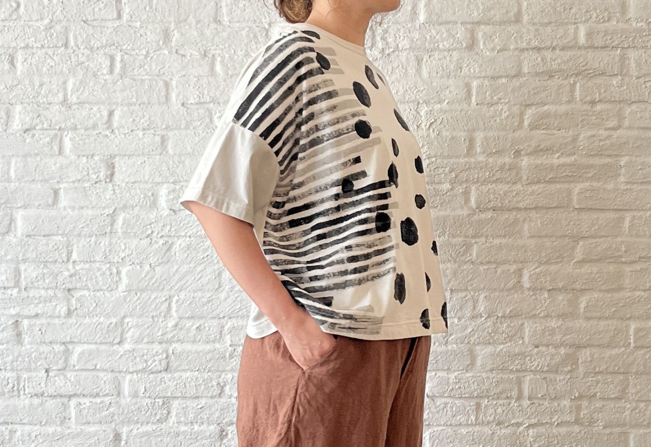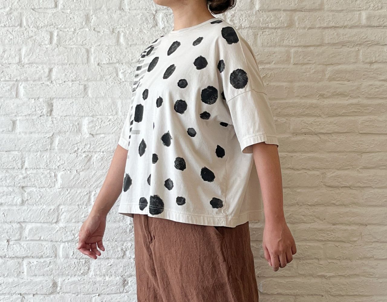 no.1922【W POINT】ボーダー&ドットプリント クルーネックプルオーバー