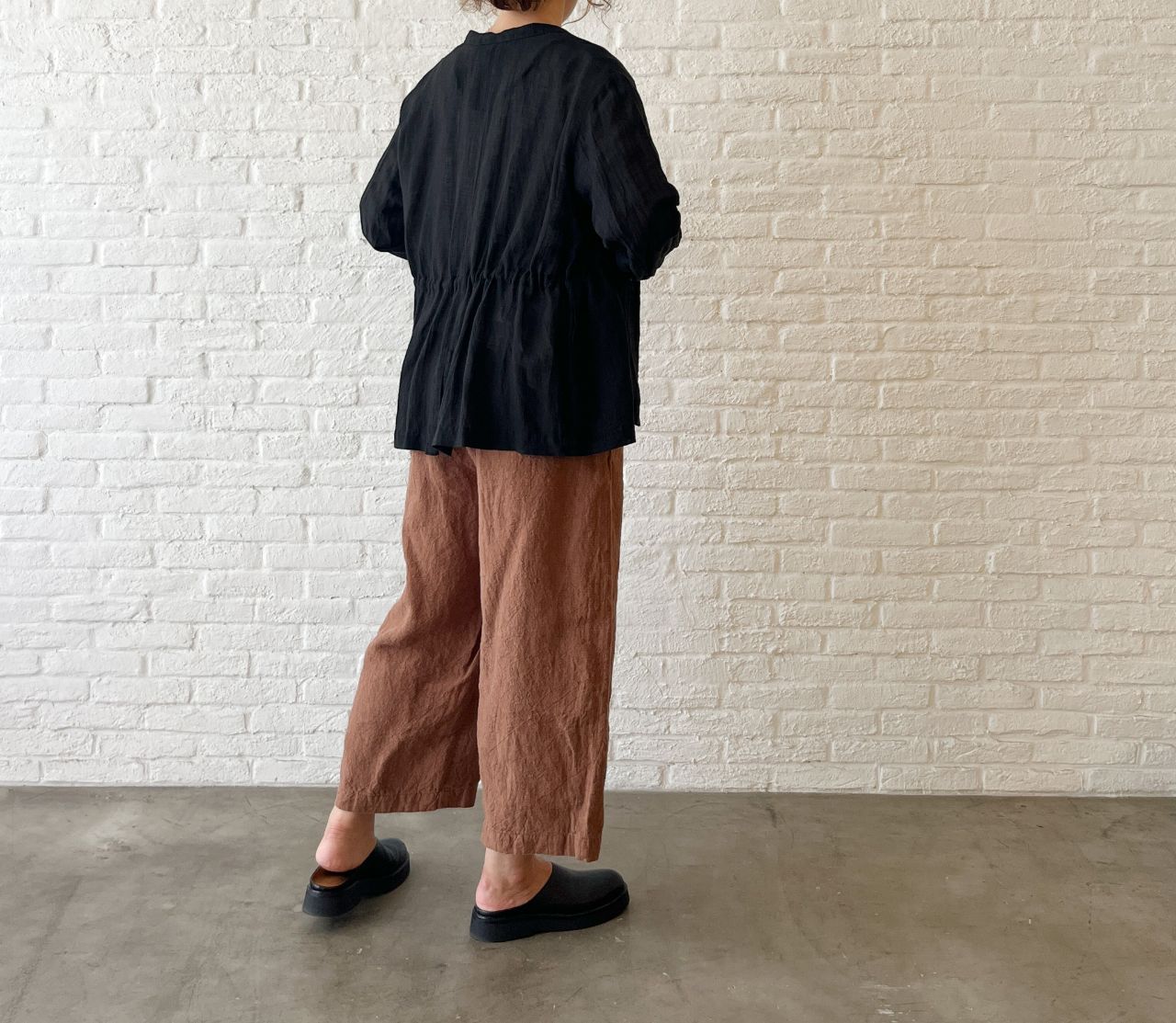 ウエスト部分には紐が入っているので、少しキュッと絞っていただくのが◎。