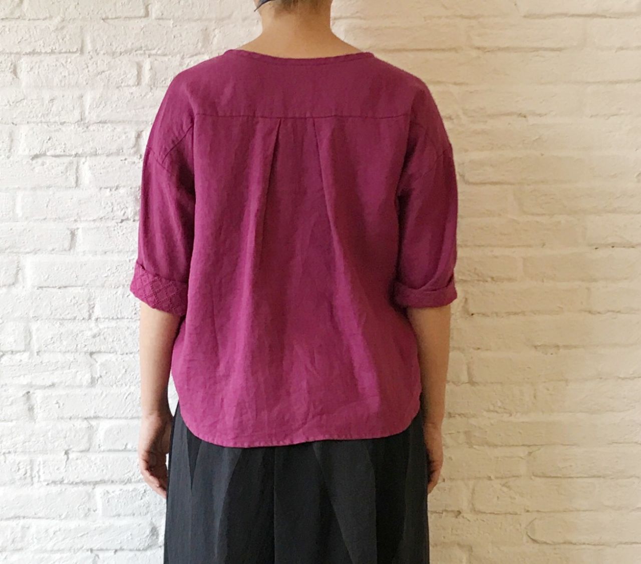 毎シーズン人気のリネンブラウスの新色は、発色の綺麗な ピンク!