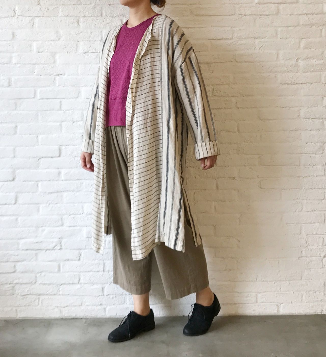 no.9000【期間限定!10%OFF】リネン先染めストライプ コート