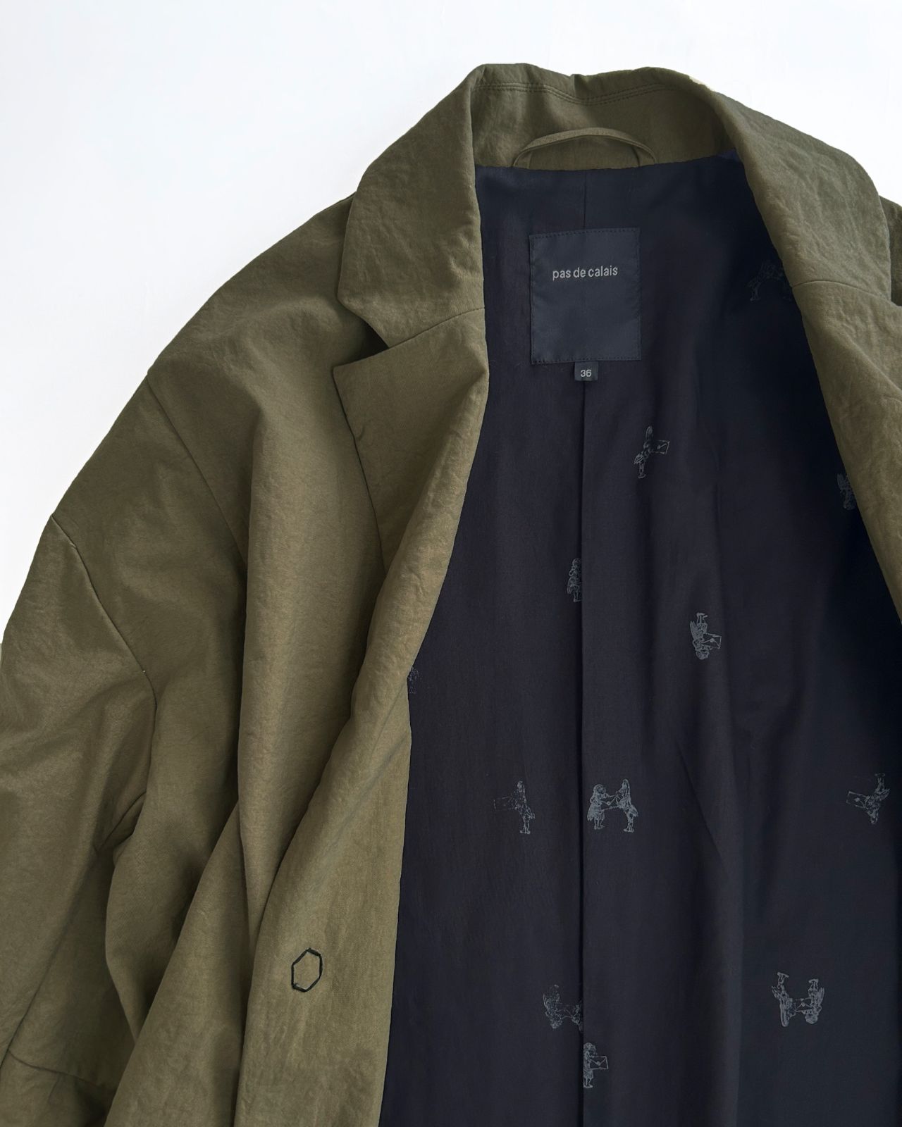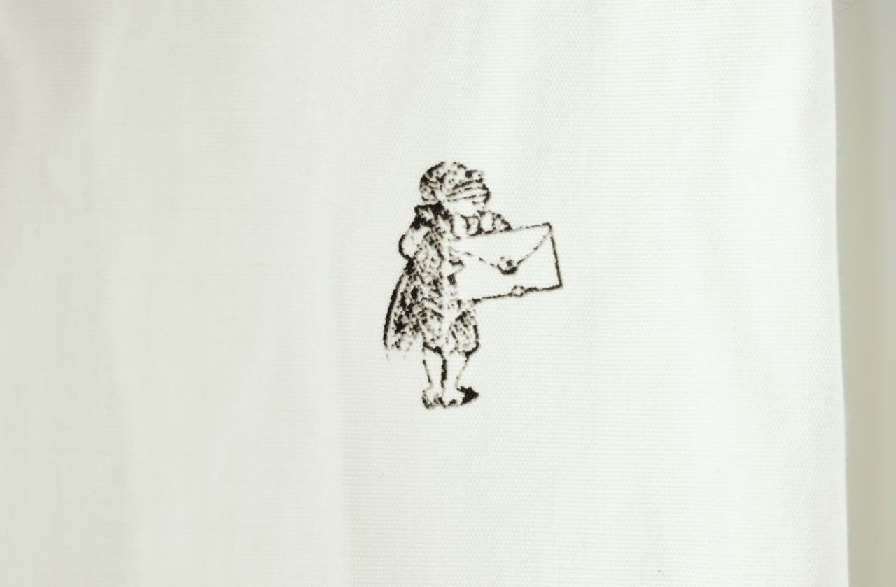 ラブレターを運ぶ配達人が裏地になっているアウター。