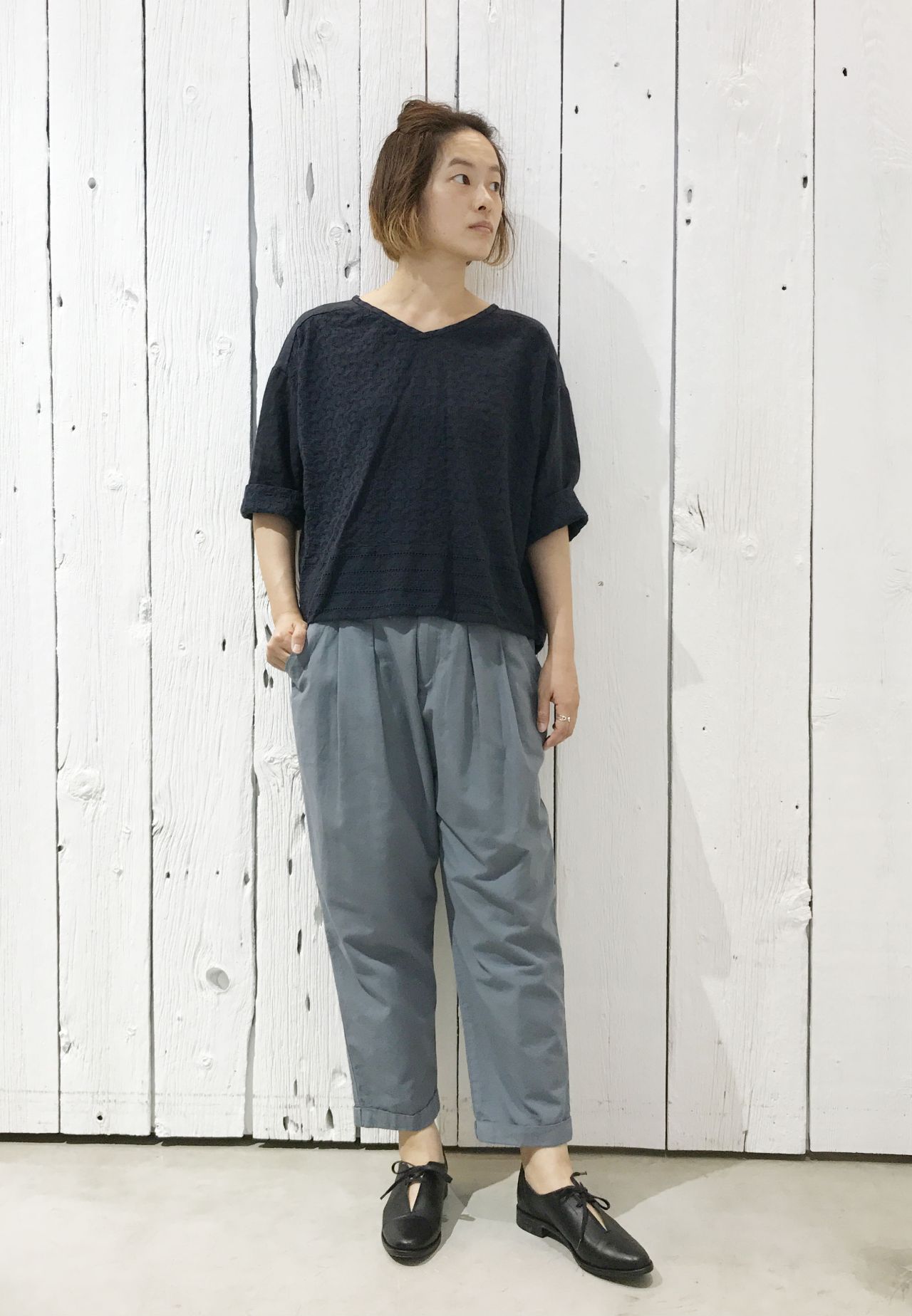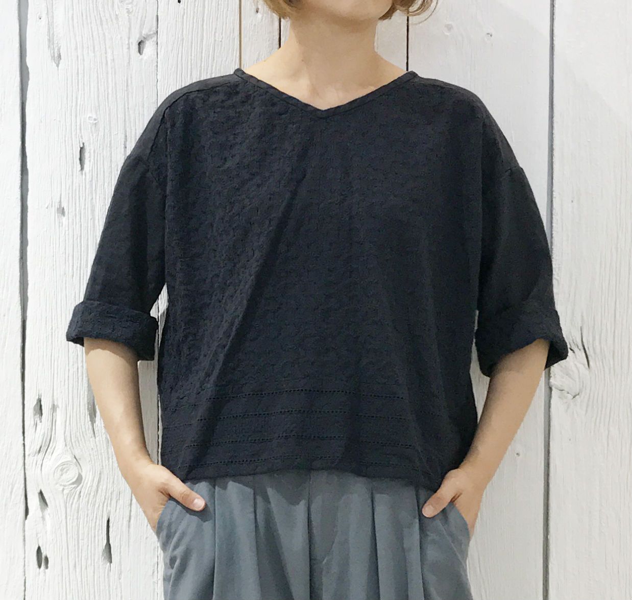 暖かい日中でしたら1枚でサラッと着ていただける