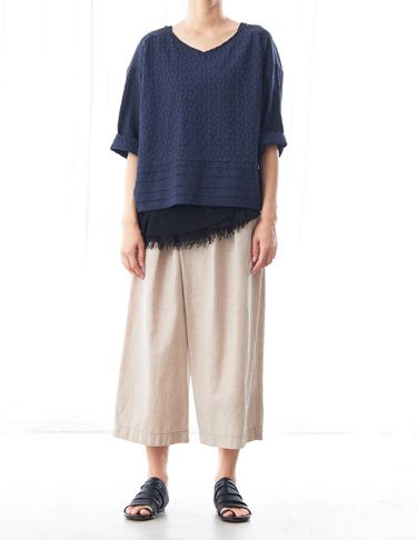 no.6888 幾何学ストライプエンブロイダリーリネン平 ブラウス