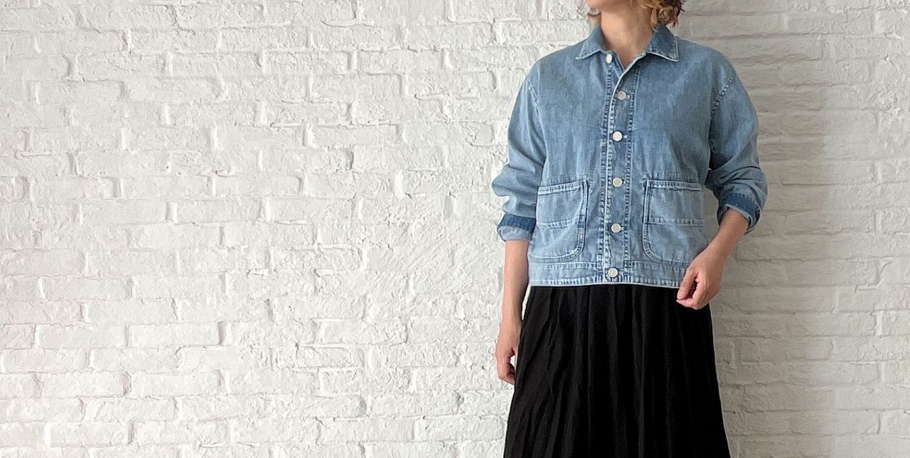 リネンコットンのしっかりした素材感に、タテにしわを入れて表情を出しています。