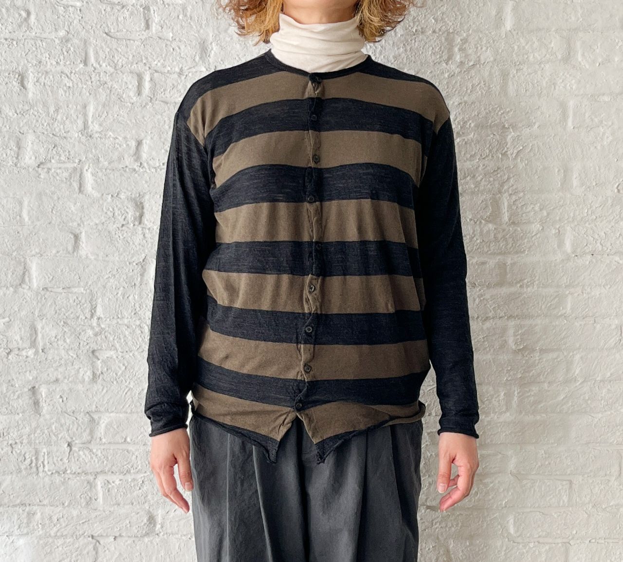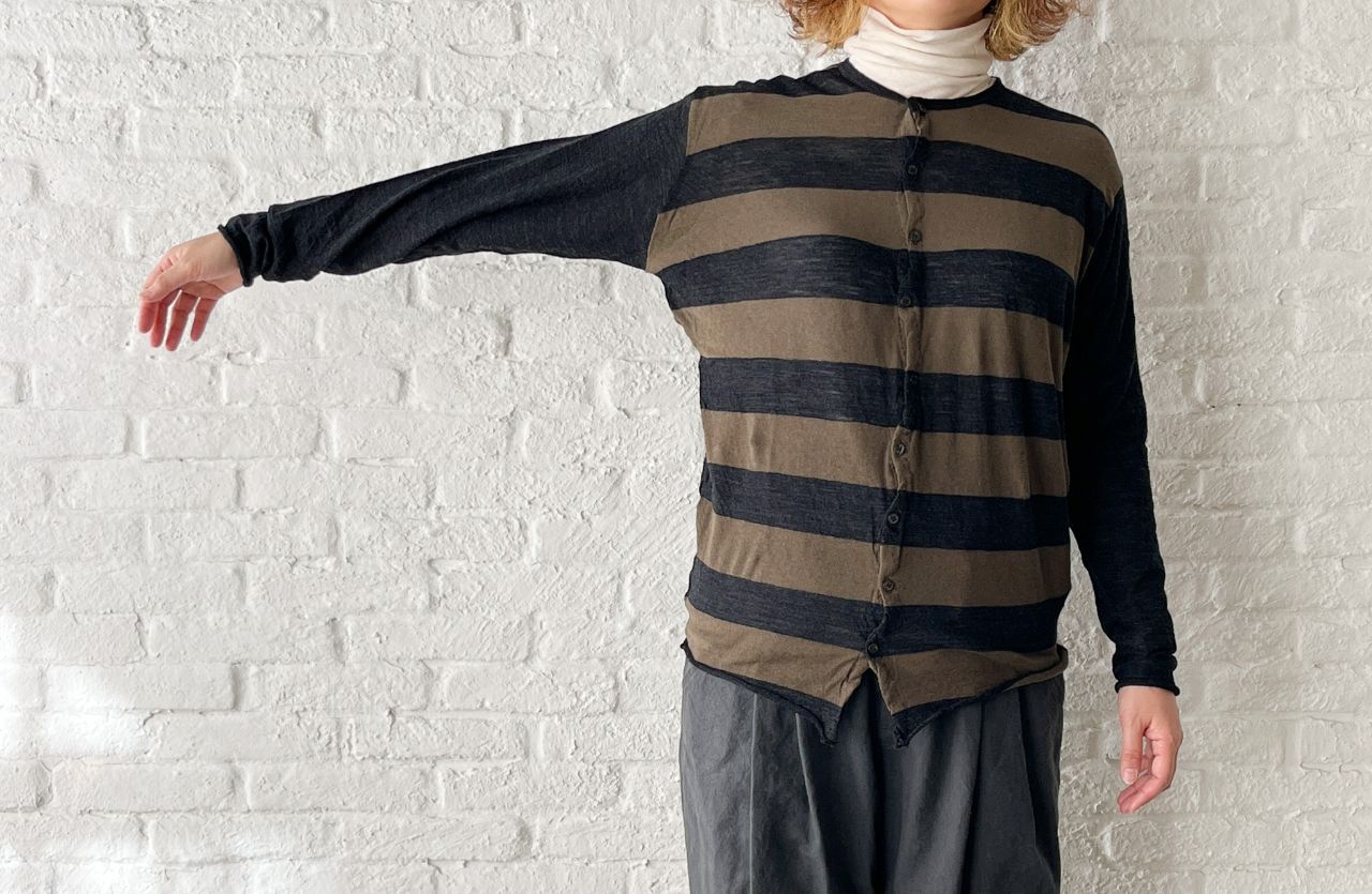 no.1668【SALE】C/Wボーダー&ガーゼ無地 カーディガン