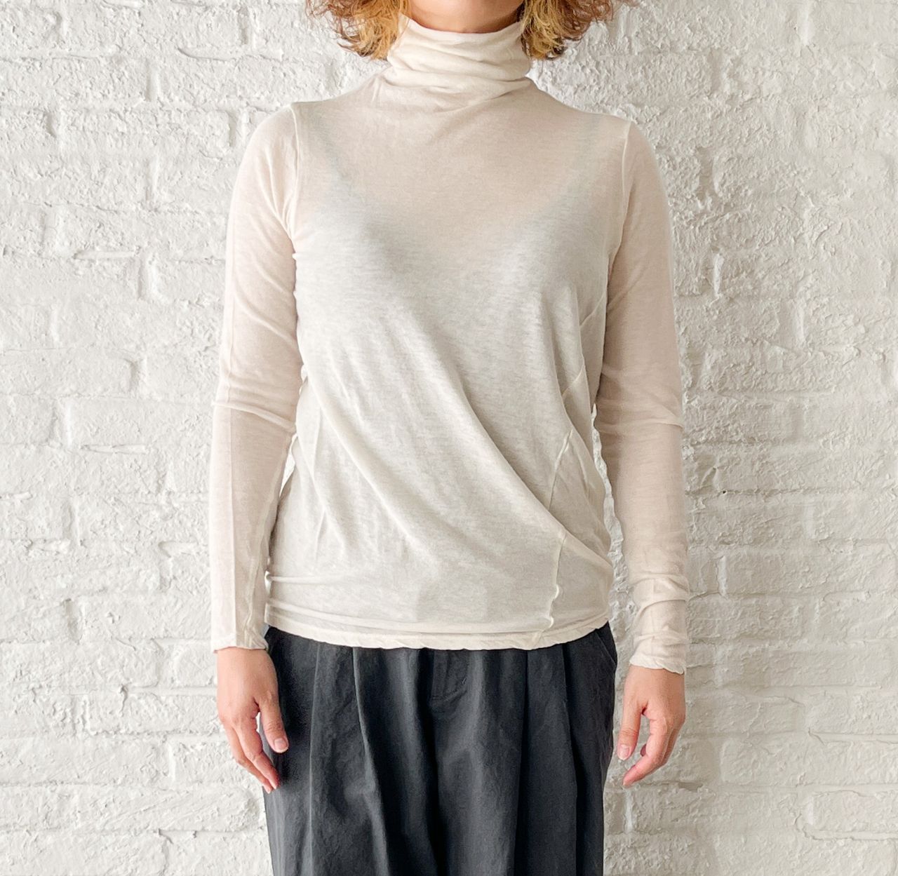 インナーにぴったりのタートルカットソー。