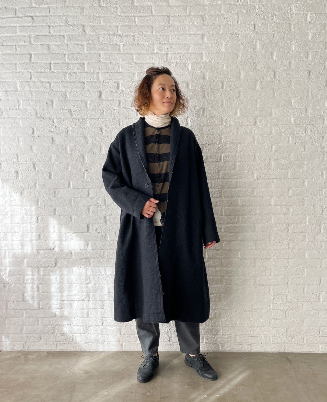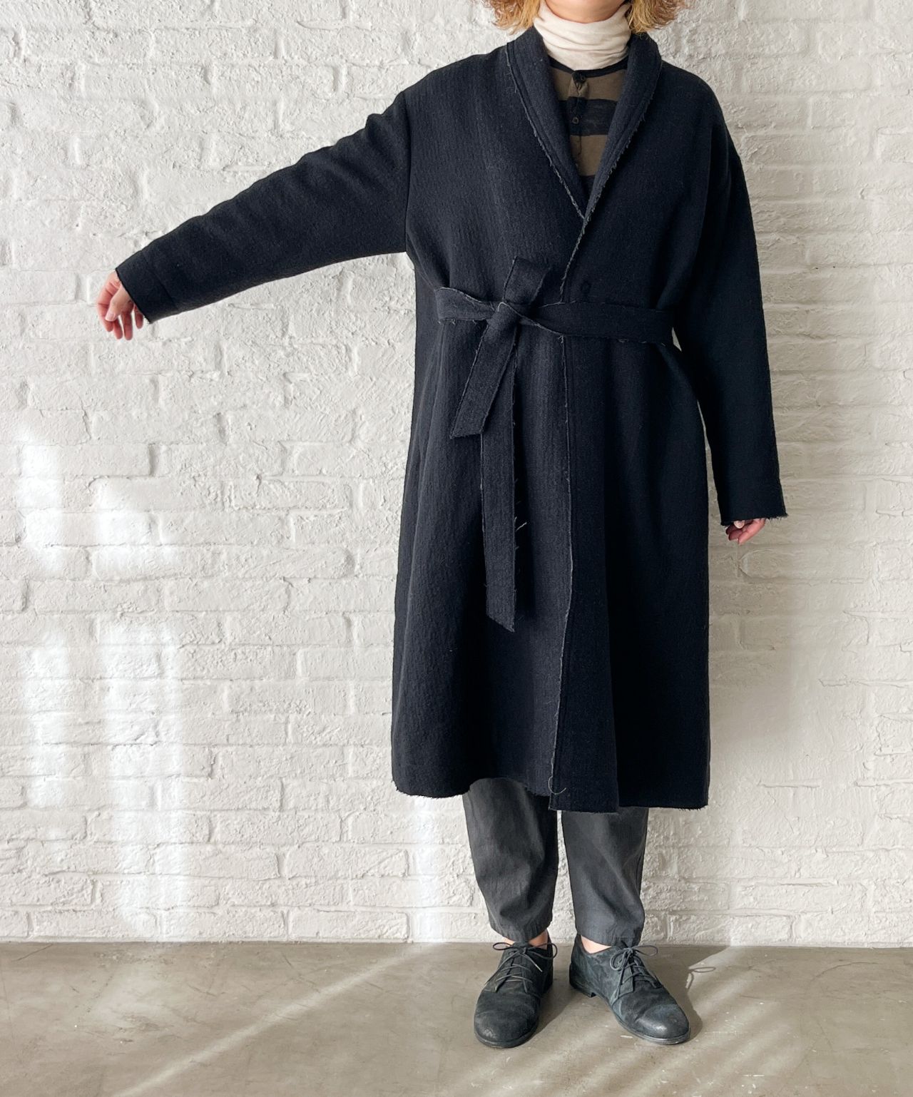 col.9234【SALE】ウール耳ストライプ二重織り コート