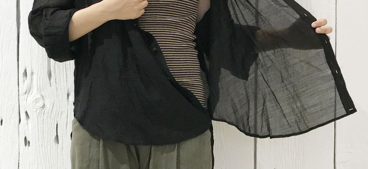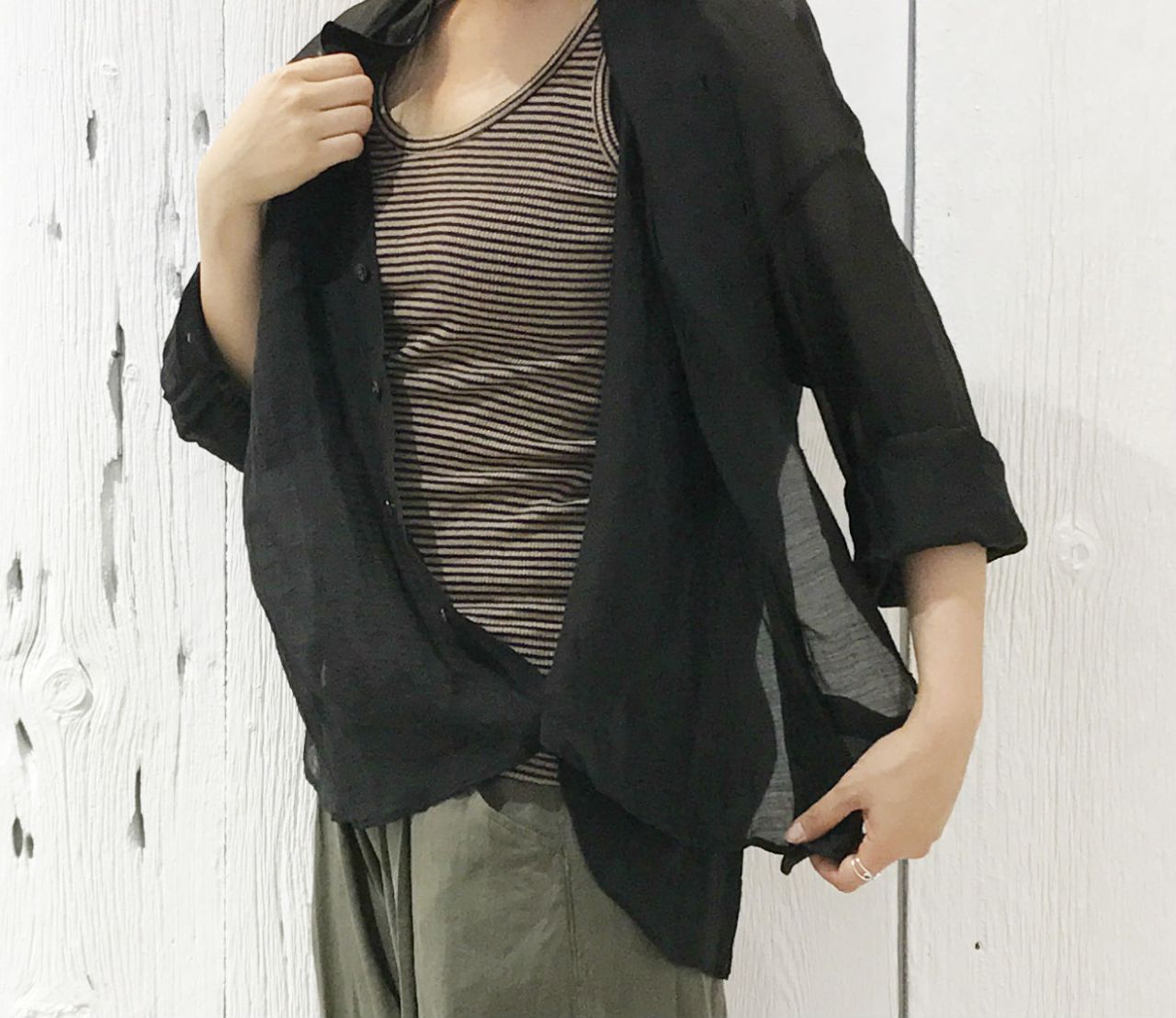 インナーのボーダータンクもうっすら透けるほど薄手。