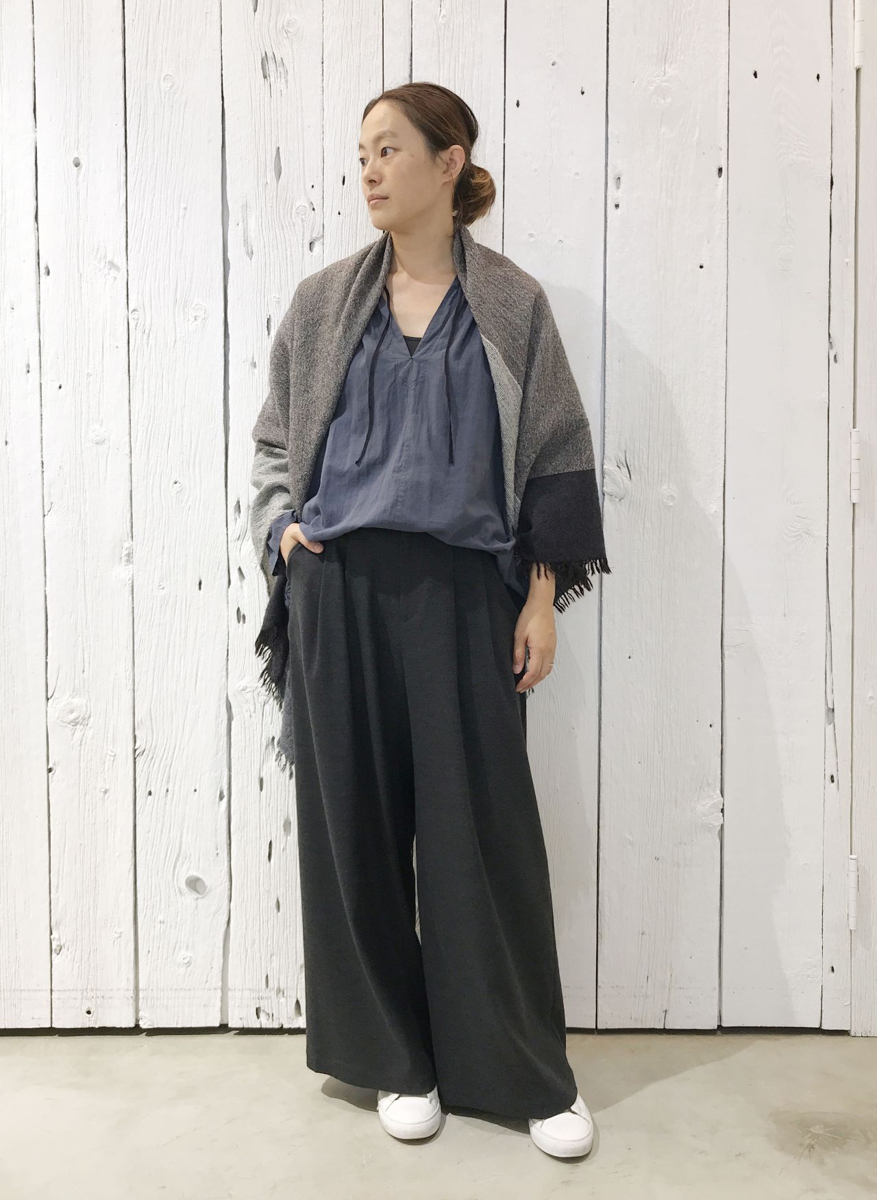 ブラウスで大人カジュアルな、落ち着いた雰囲気に。