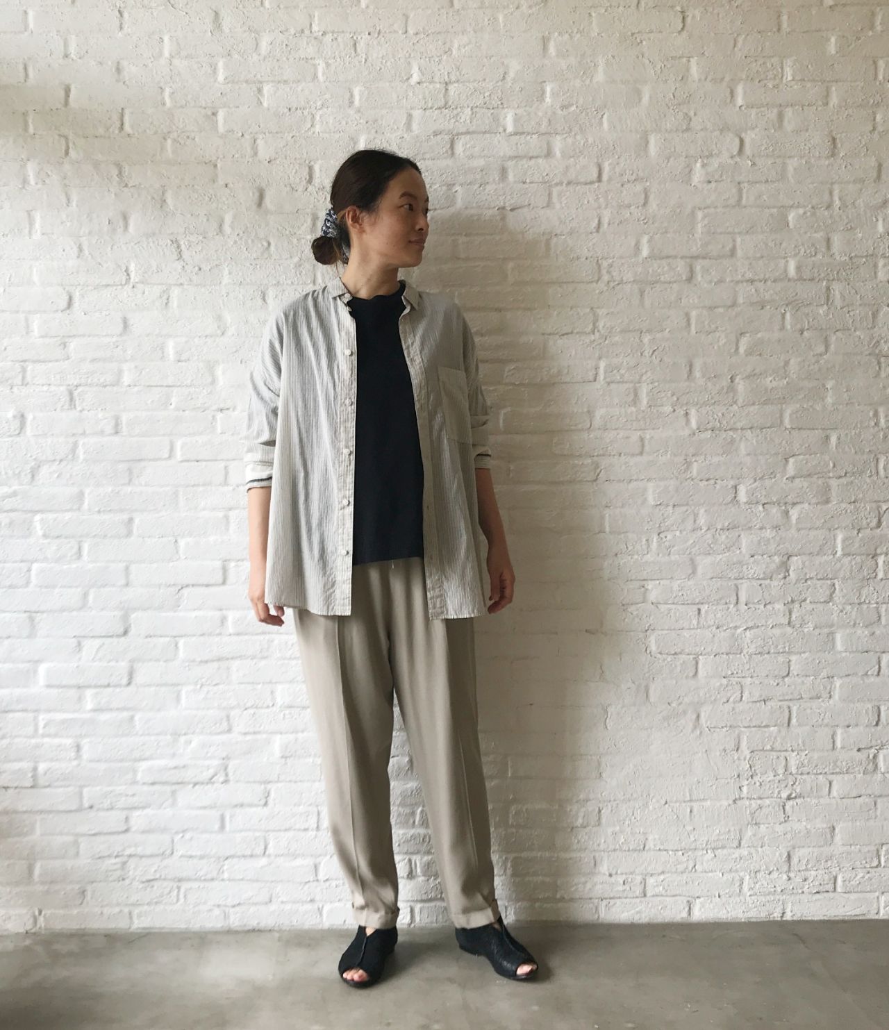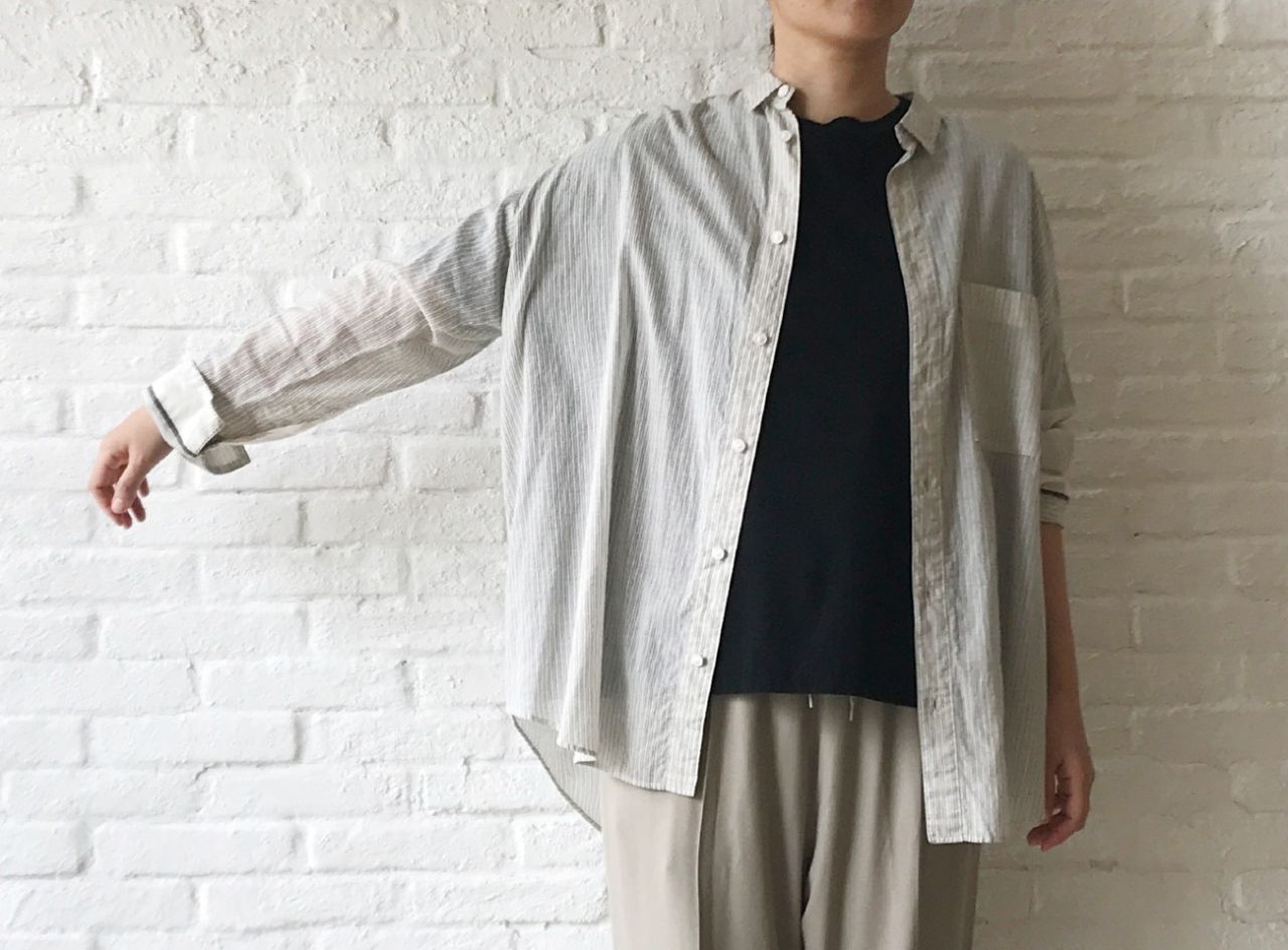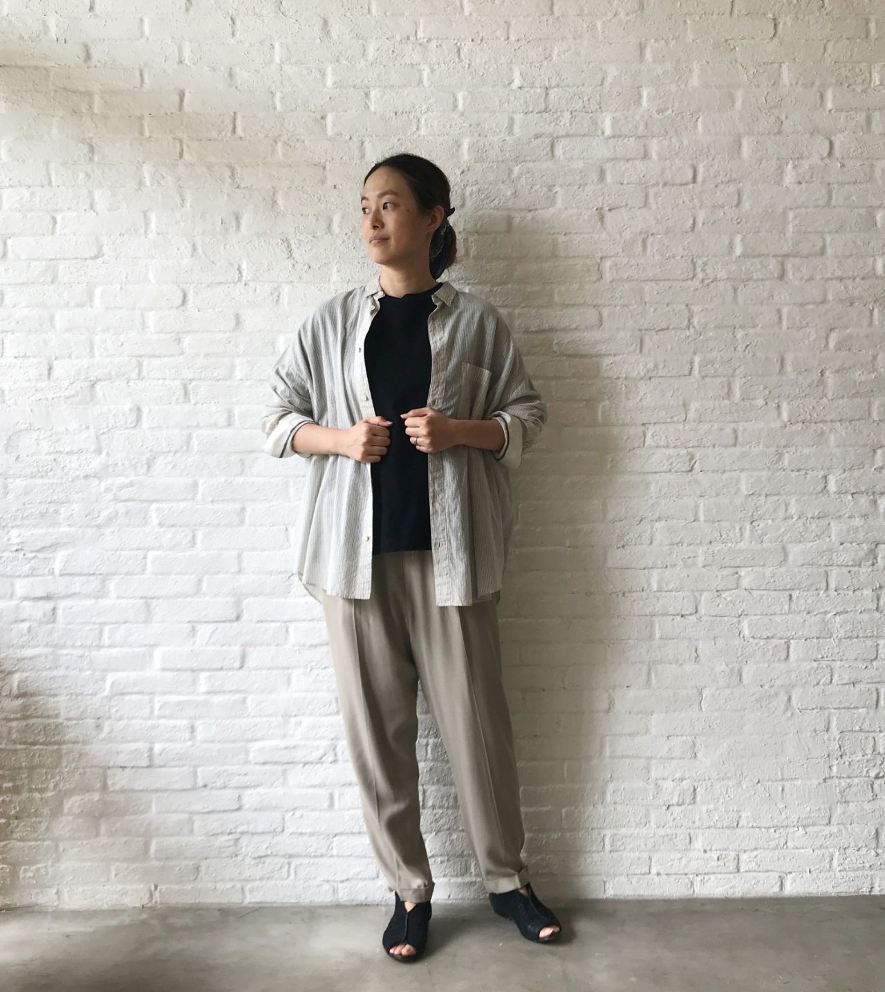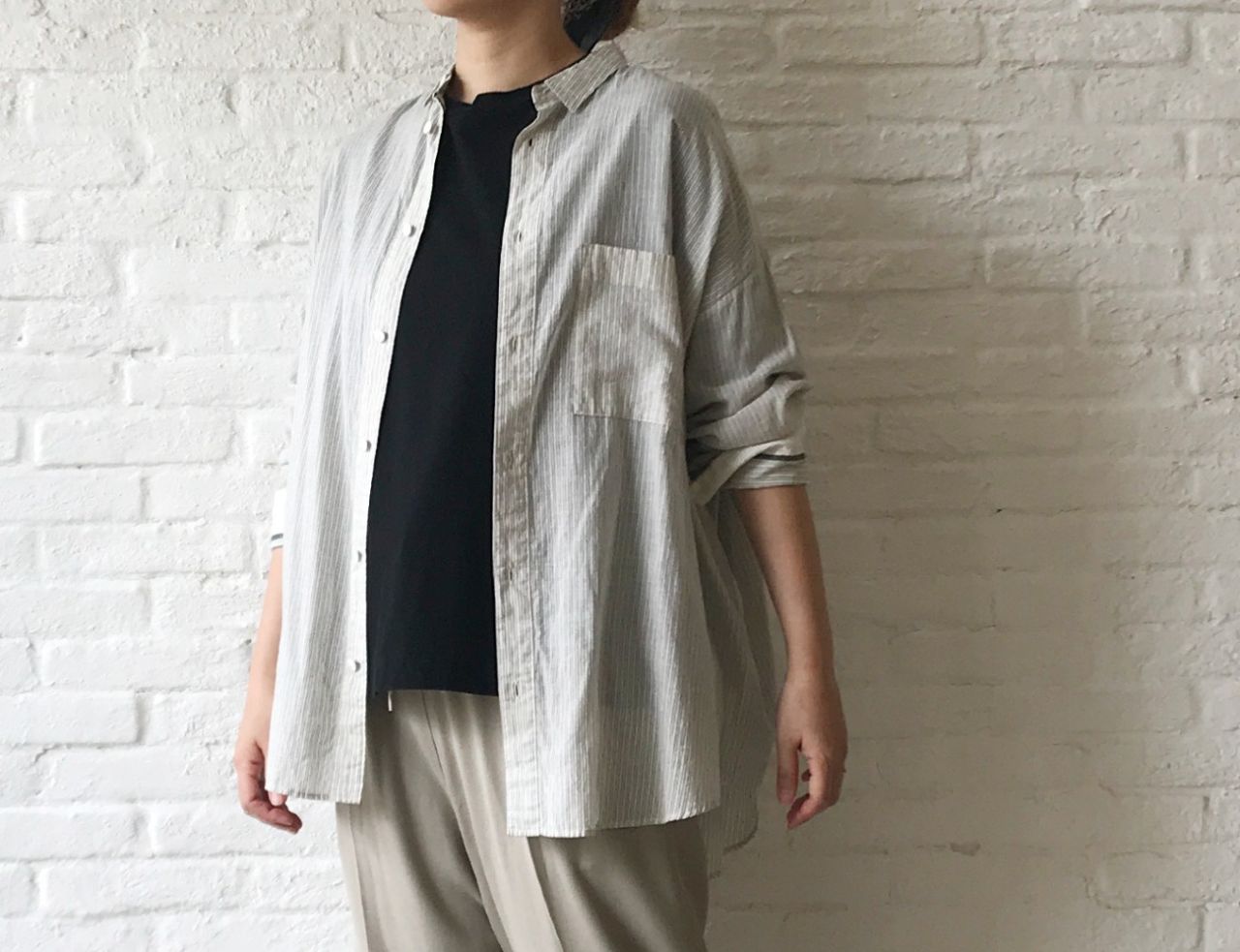 col. 04 アイボリーストライプ(着用)/01 ホワイト無地/ 50 グレーストライプ ¥27,500